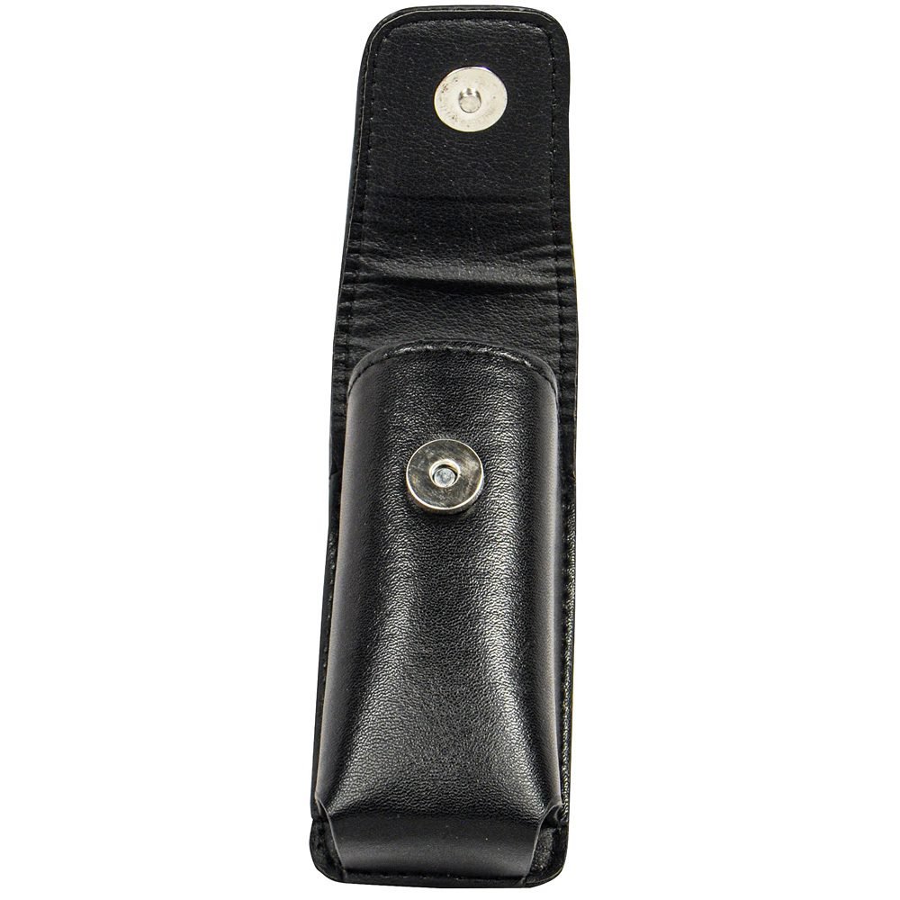 Deluxe black leatherette holster for Li’L Guy stun gun designed with a more attractive look than your standard nylon holster that comes with the stun gun. The holster has a heavy duty belt clip and a ring to hang the holster. The magnetic clasp will hold the stun gun in your holster and makes it easy to get to when needed. 4″ x 2″ x 1.38″