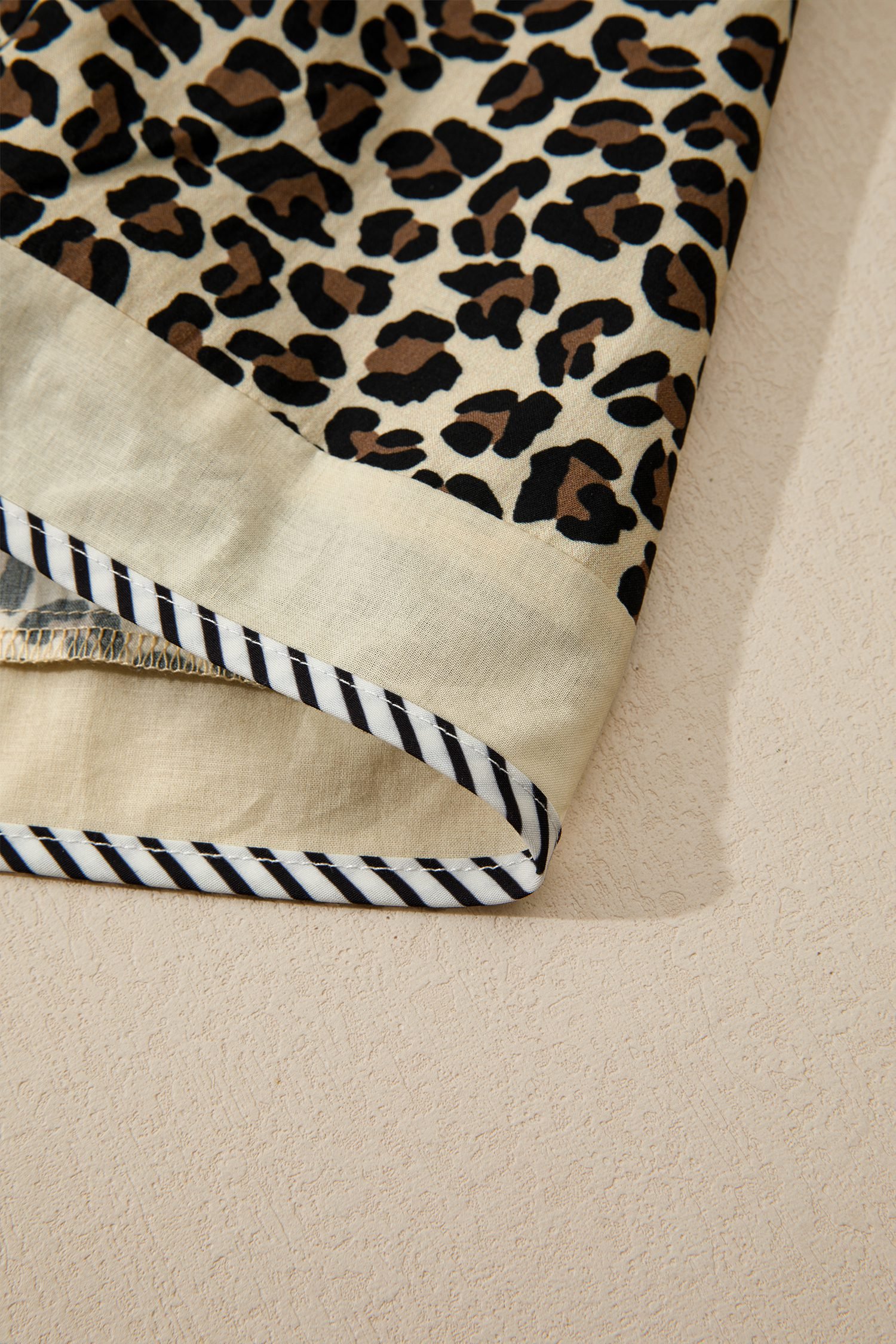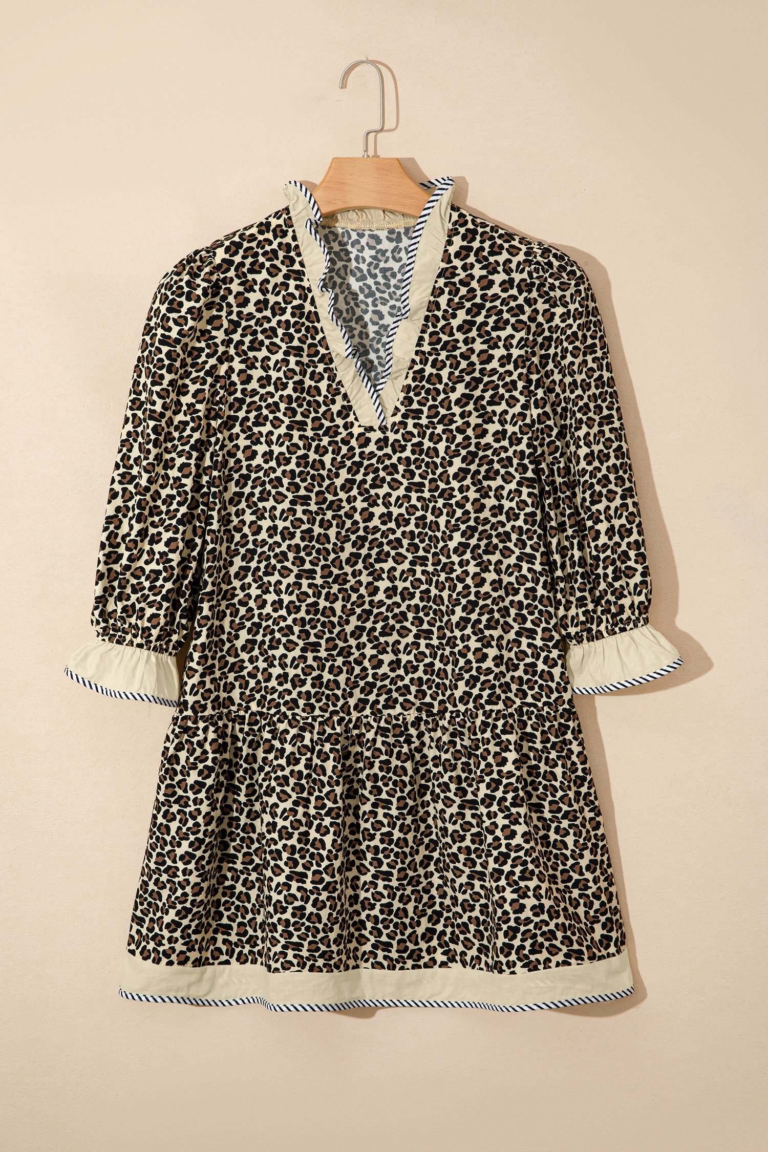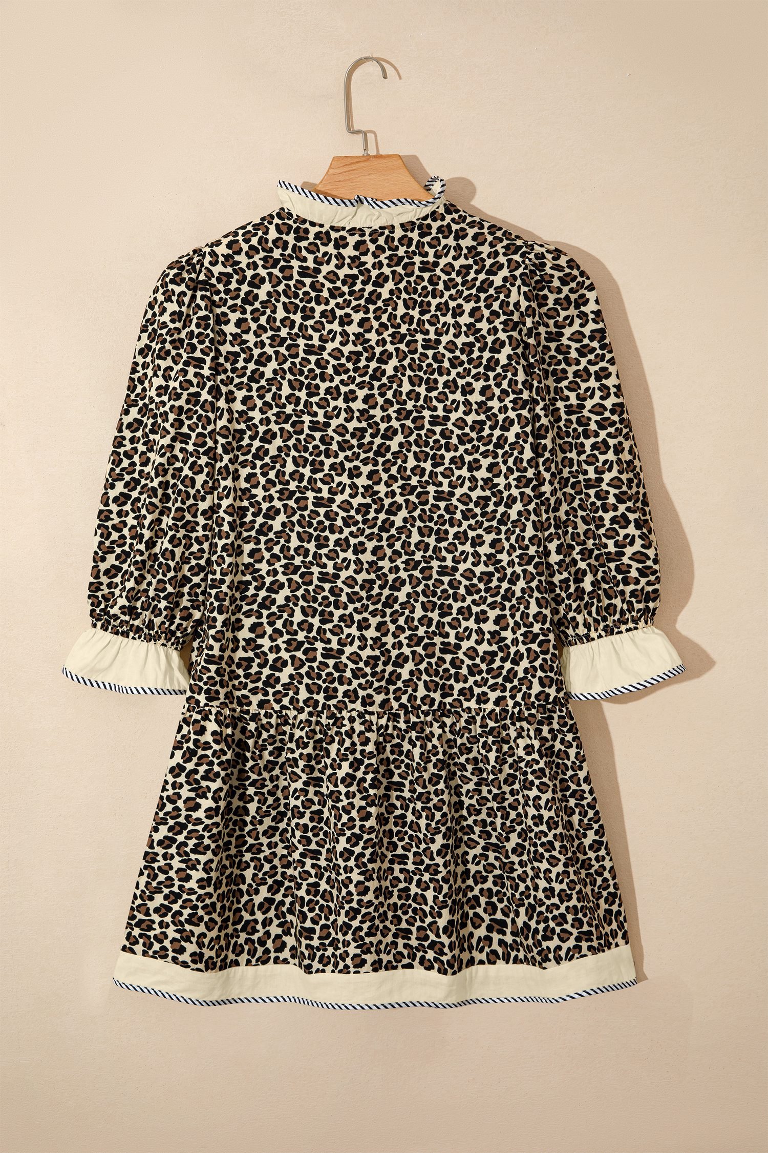 Striped color block trim adds modern contrast to this leopard print dress.