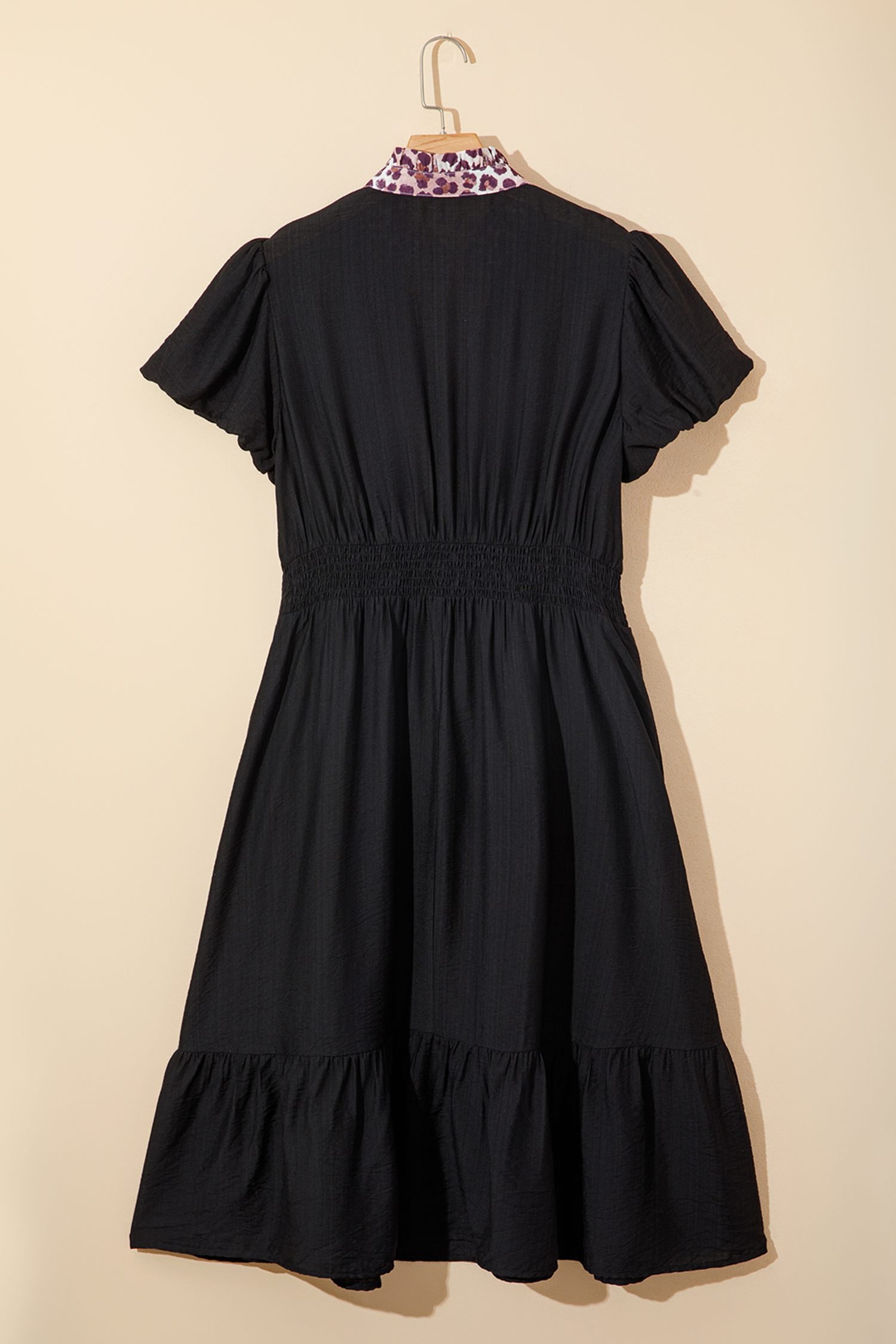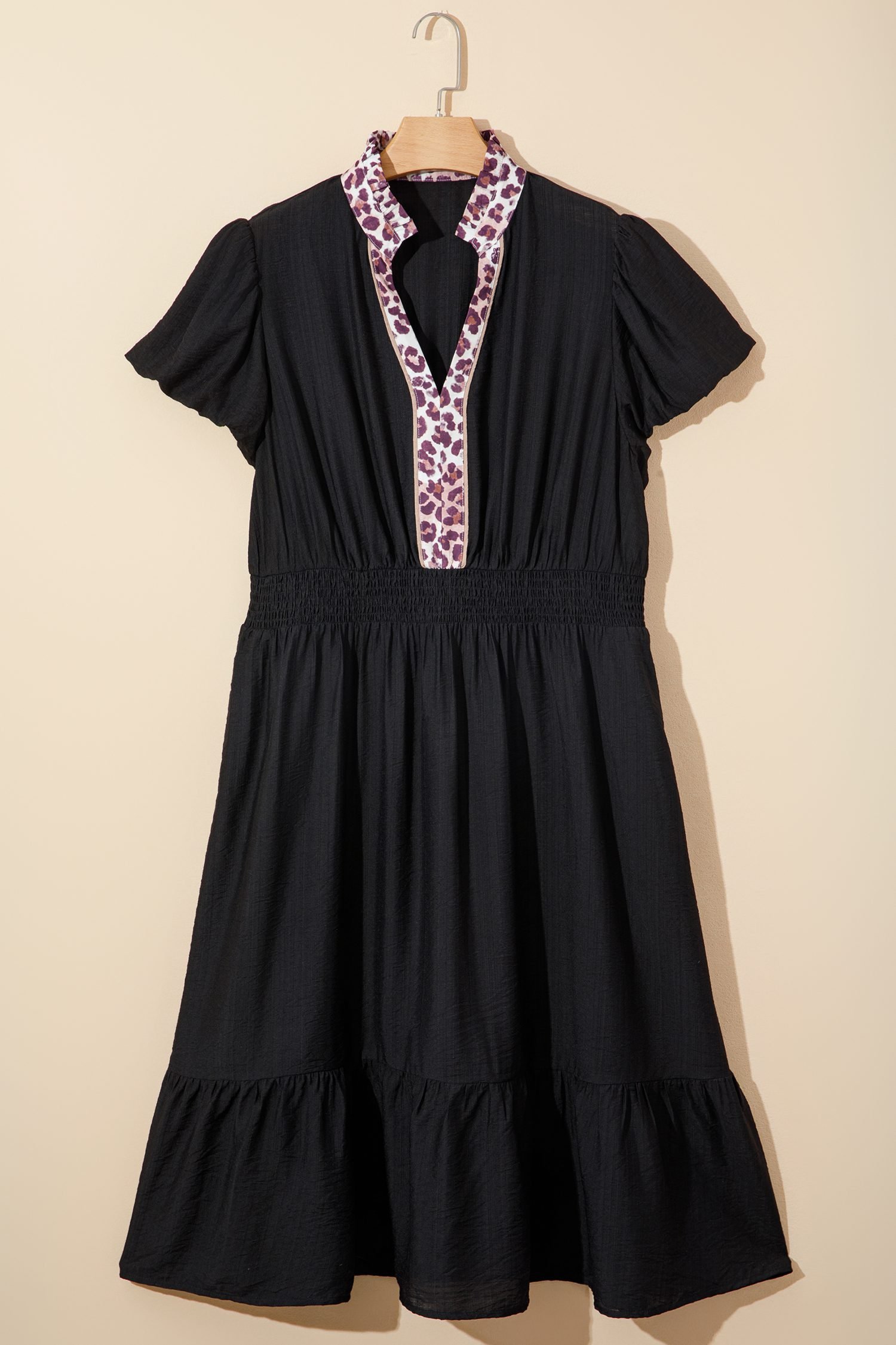 Be the first to review “Black Leopard V Neck Patchwork Smocked Waist Plus Size Ruffled Dress”