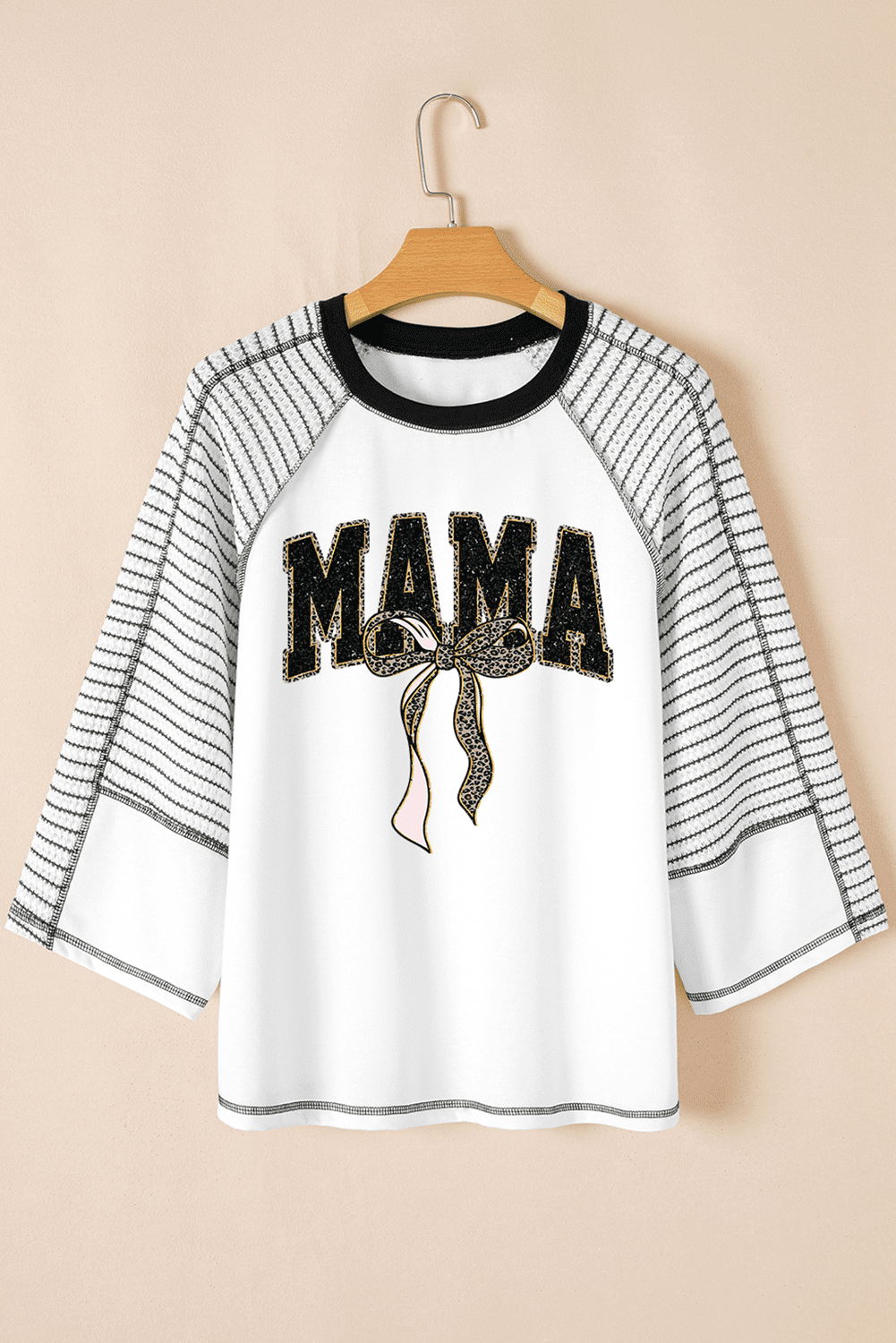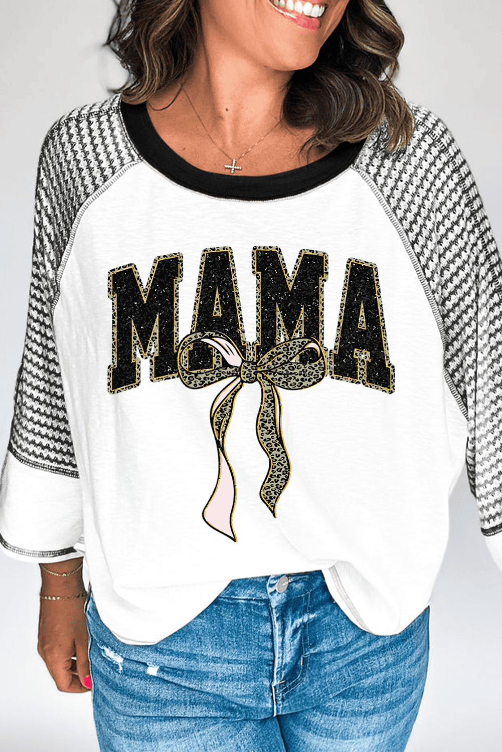 Features MAMA lettering and cute leopard bow print.
