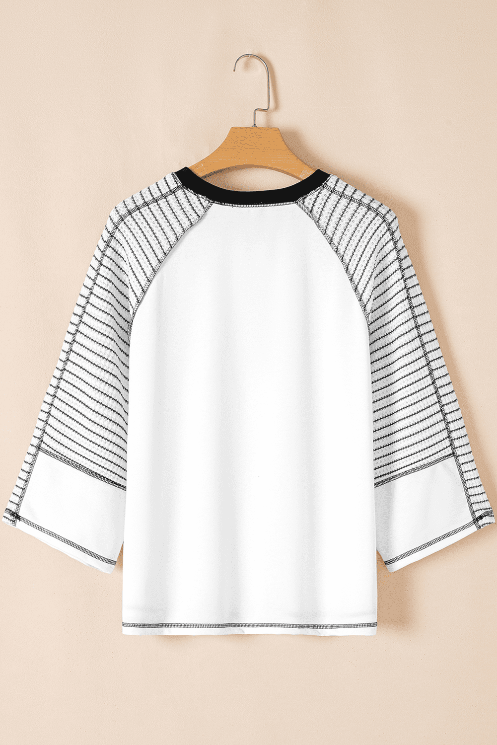 It has a contrast round neck, and a pair of wide raglan sleeves.
