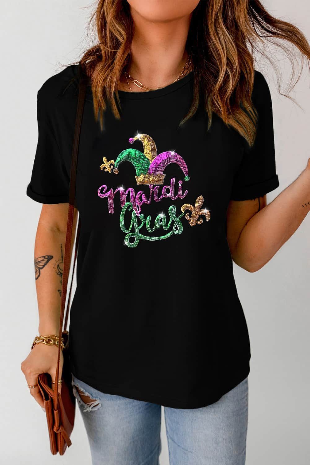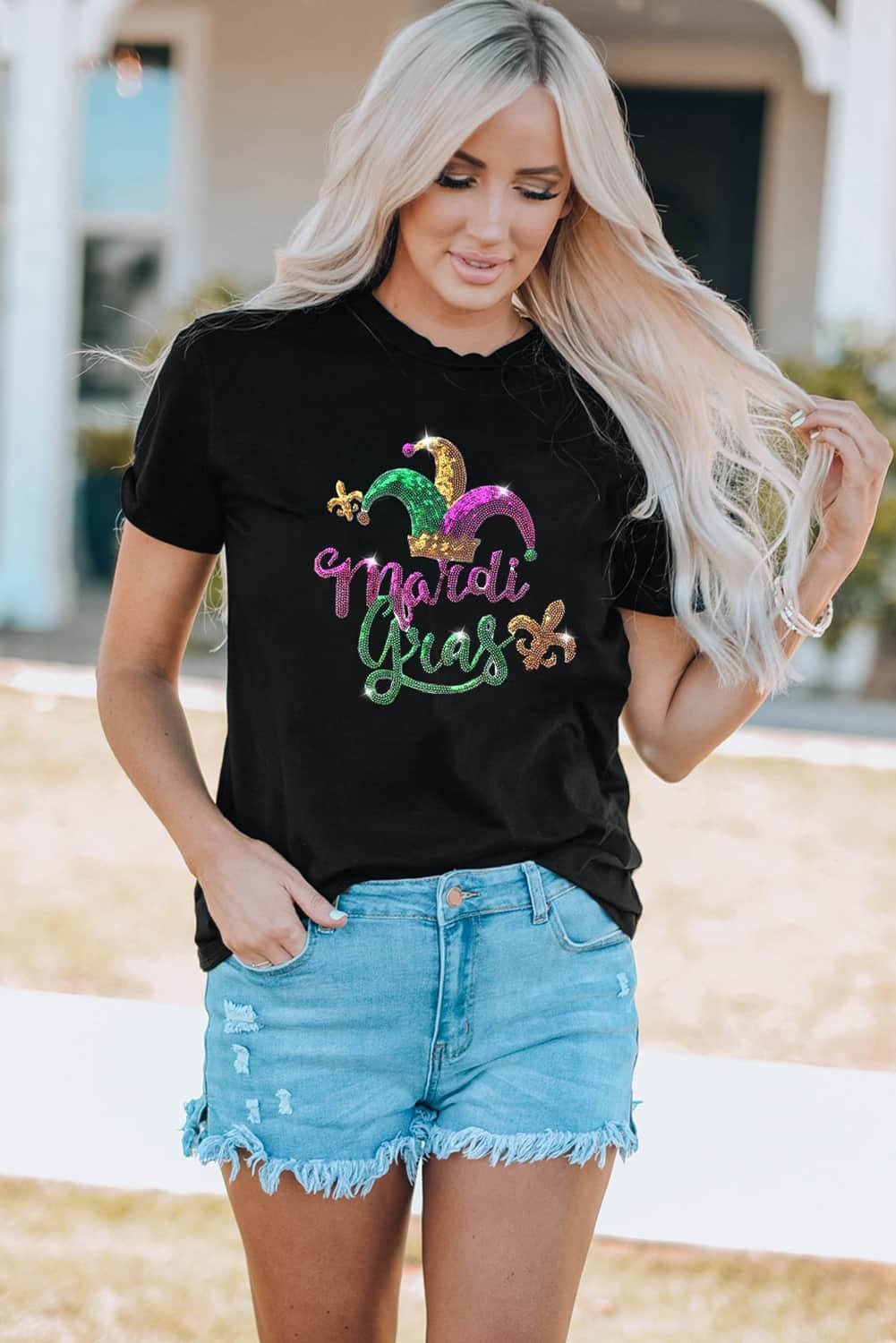 Mardi Gras Sequin Pattern Crew Neck T Shirt