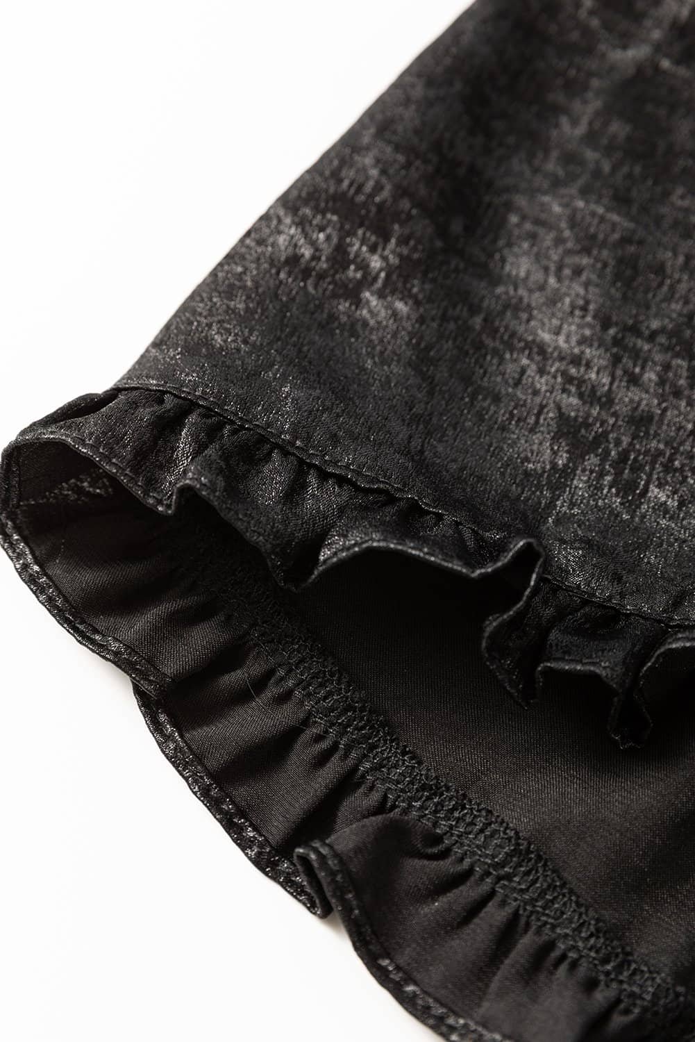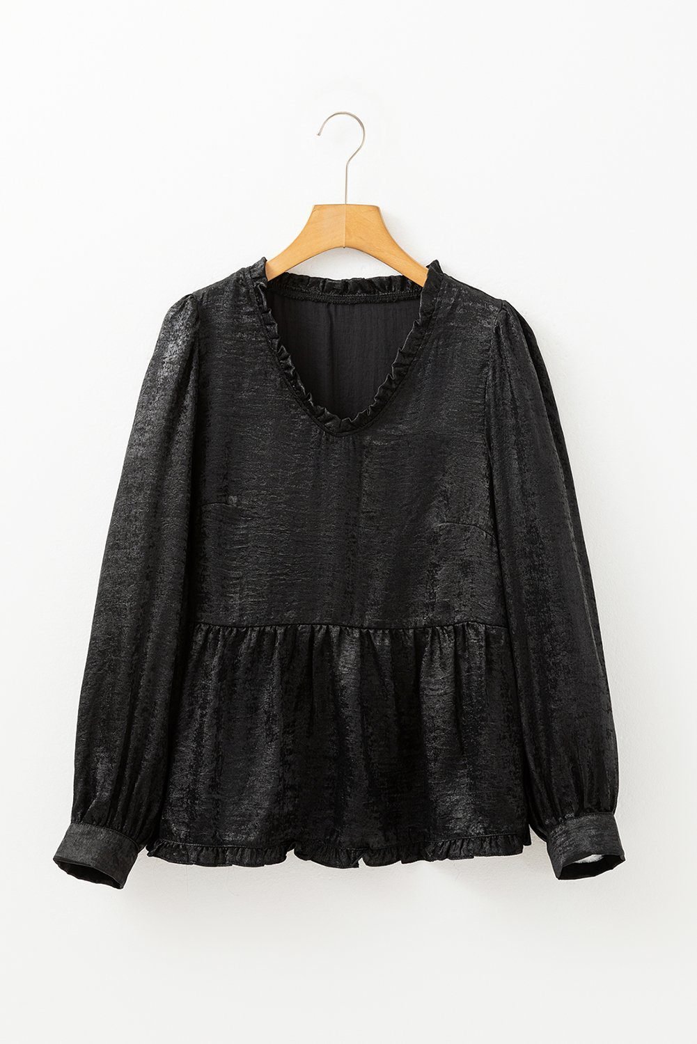 Black Metallic Frilled V Neck Puff Sleeve Babydoll Blouse