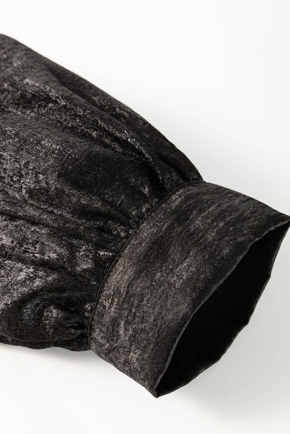 Be the first to review “Black Metallic Frilled V Neck Puff Sleeve Babydoll Blouse”