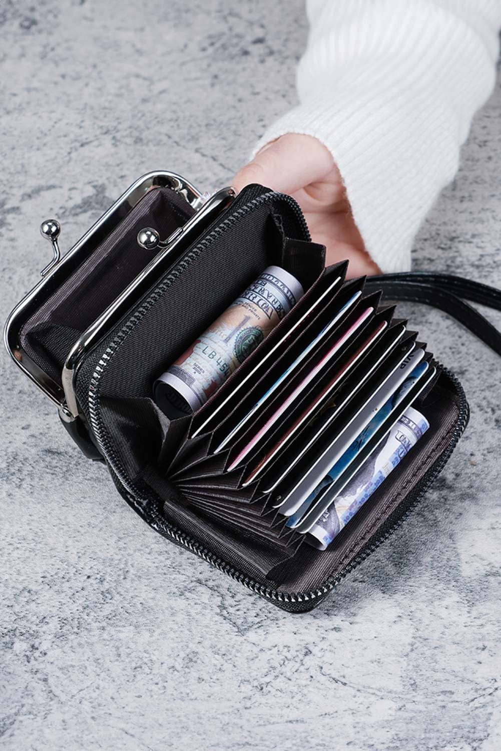 Black Minimalist Wristlet Pu Leather Coin Purse