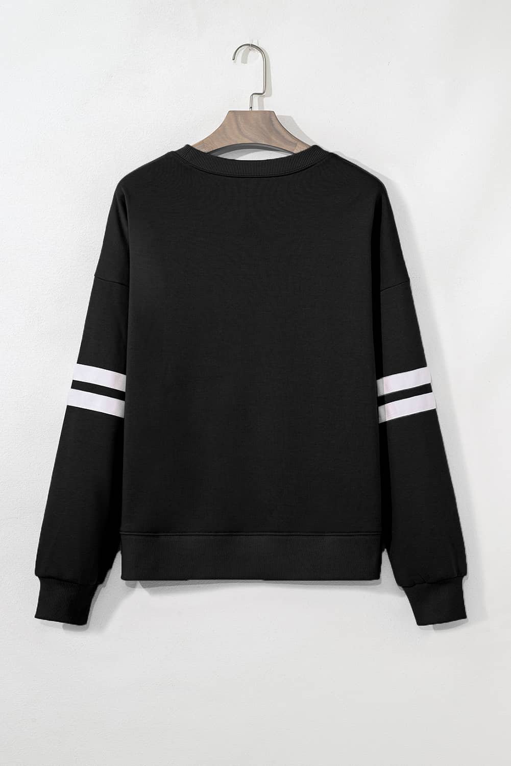 Oversize sweatshirt with a preppy striped details at both sleeves.