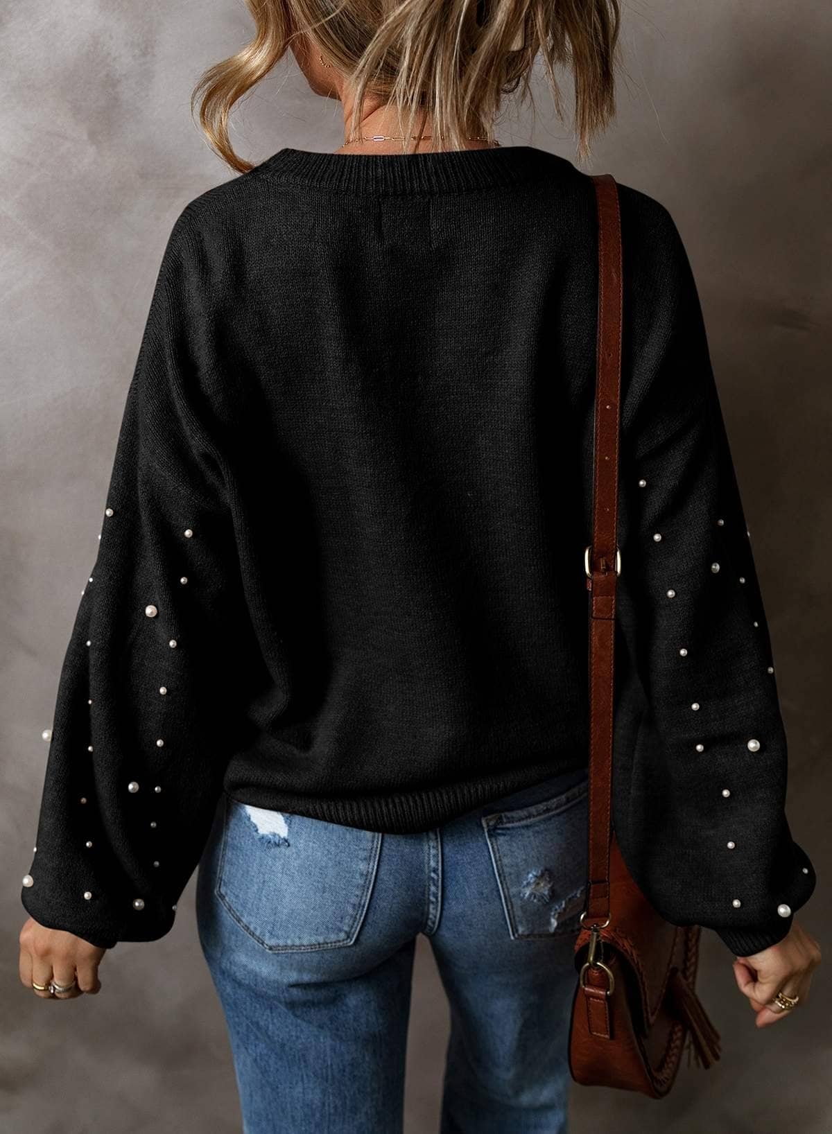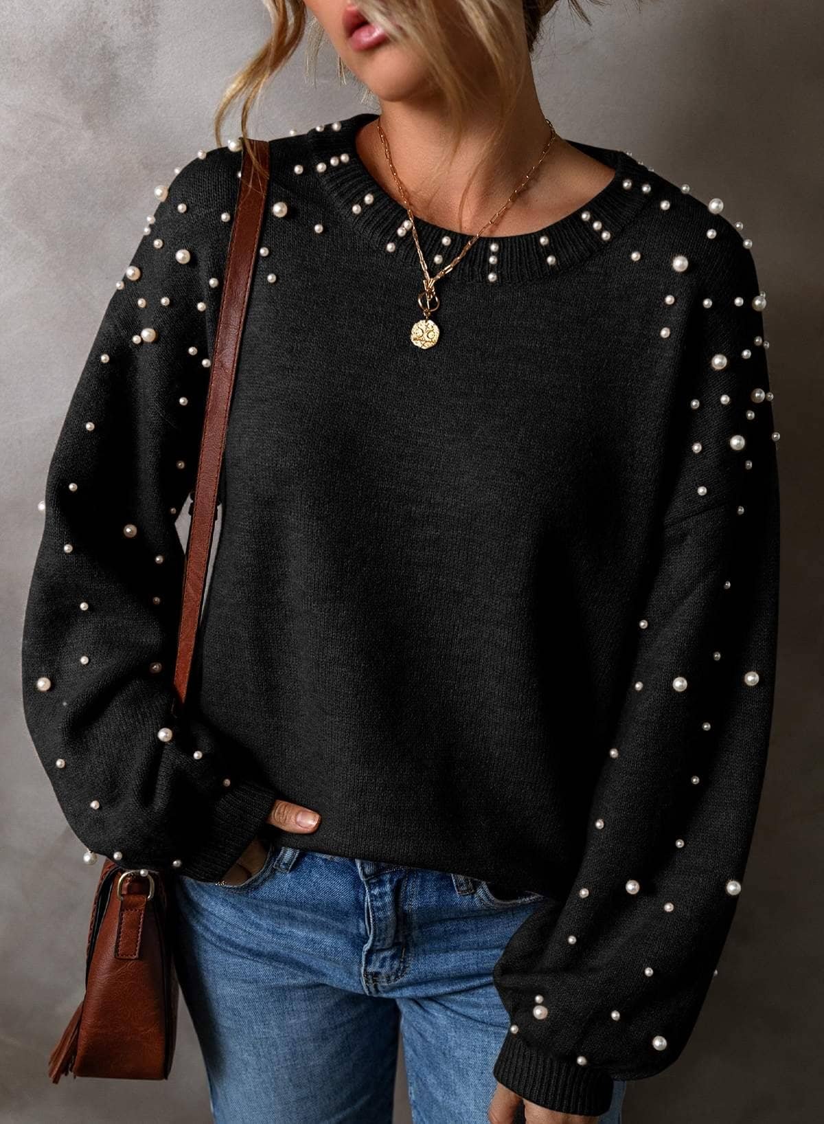 Be the first to review “Black Pearled Drop Shoulder Round Neck Sweater”