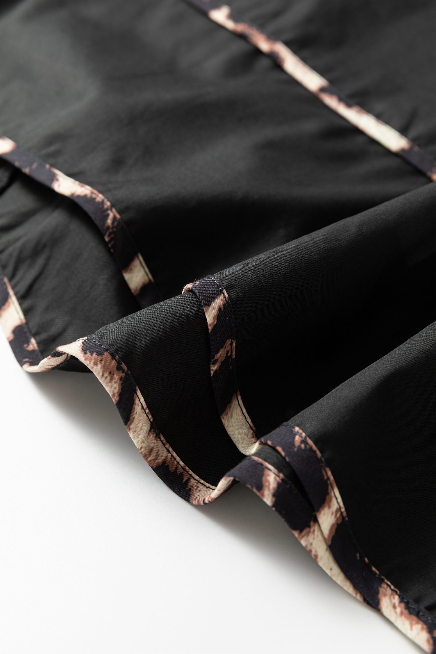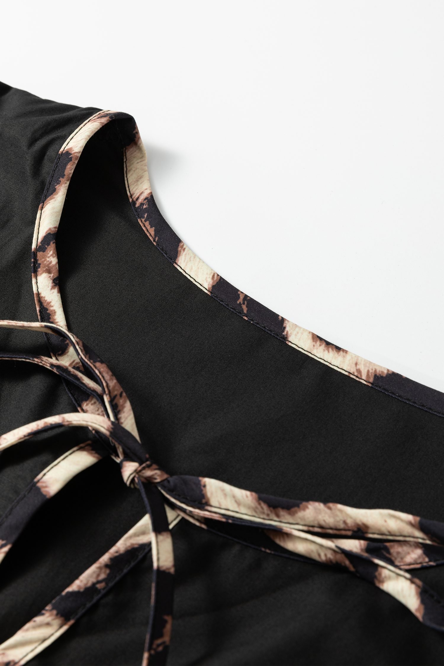 Contrasted trim enhances the leopard print with chic definition.