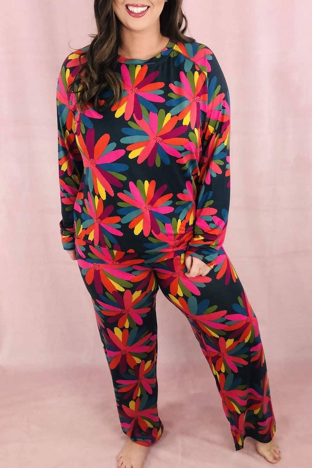 Black Plus Size Printed Long Sleeve And Pants Lounge Set