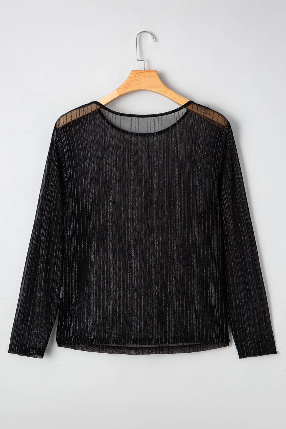 Be the first to review “Black Plus Size Shimmer Textured Mesh Fitted Long Sleeve Top”