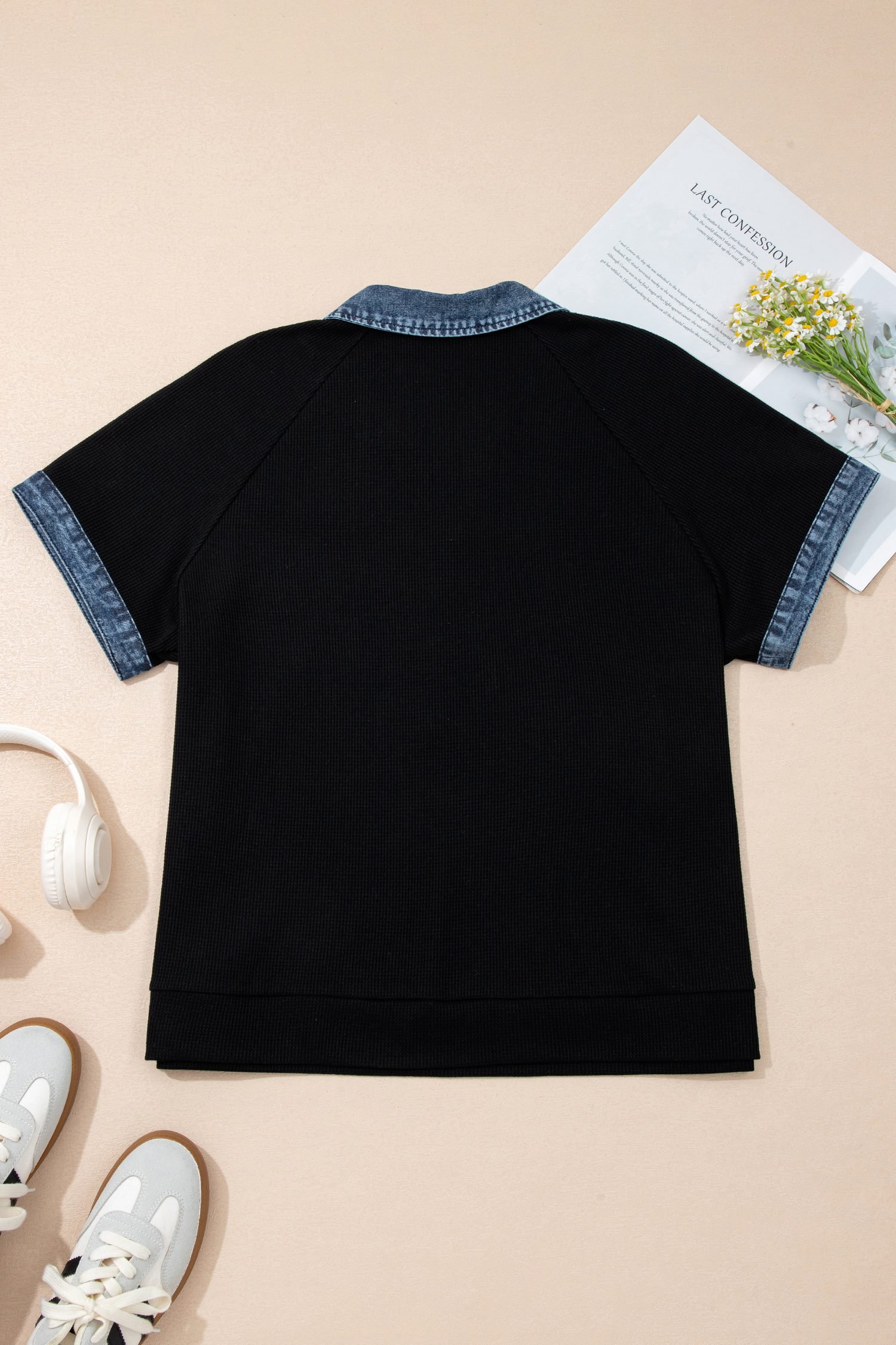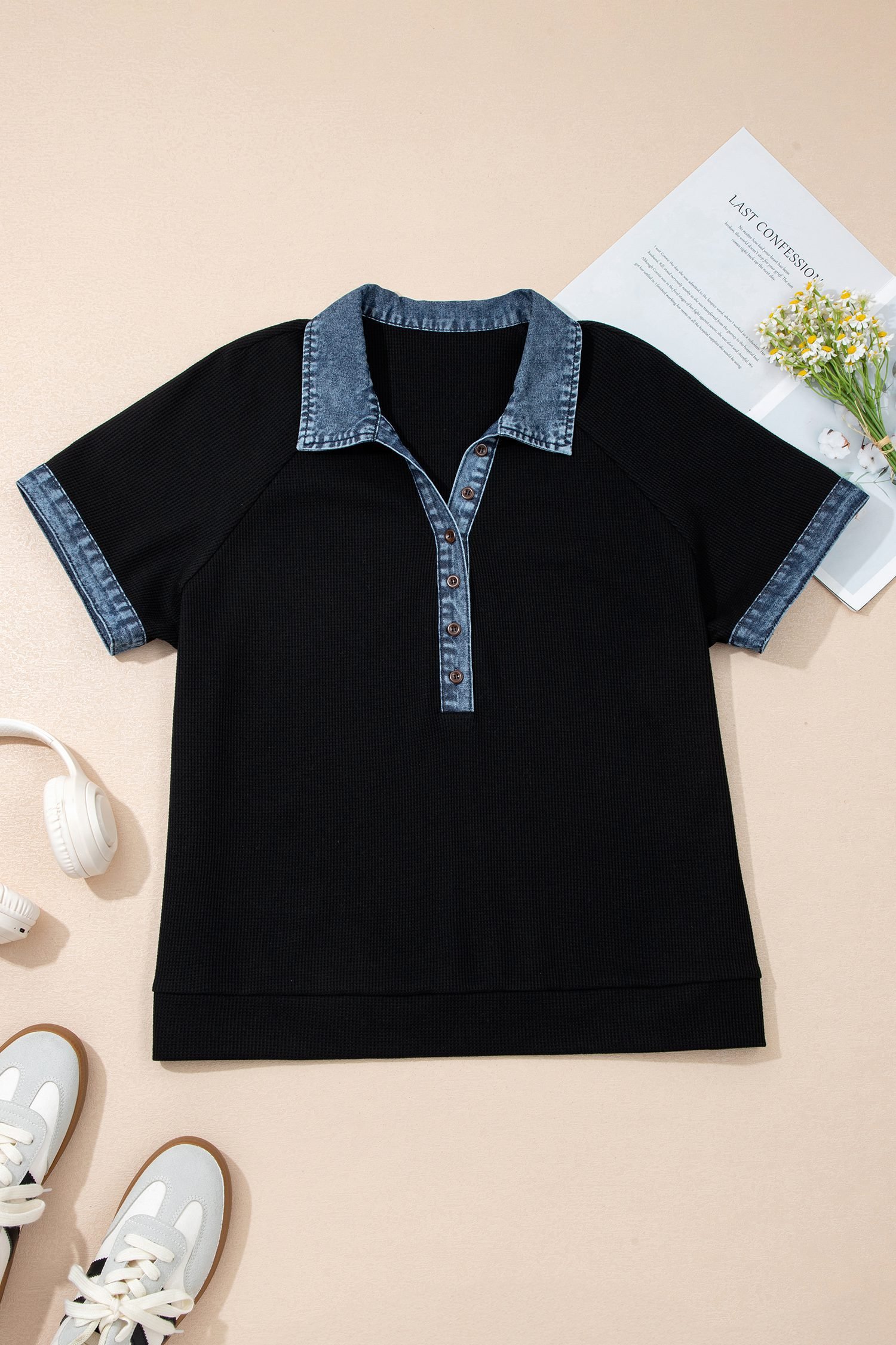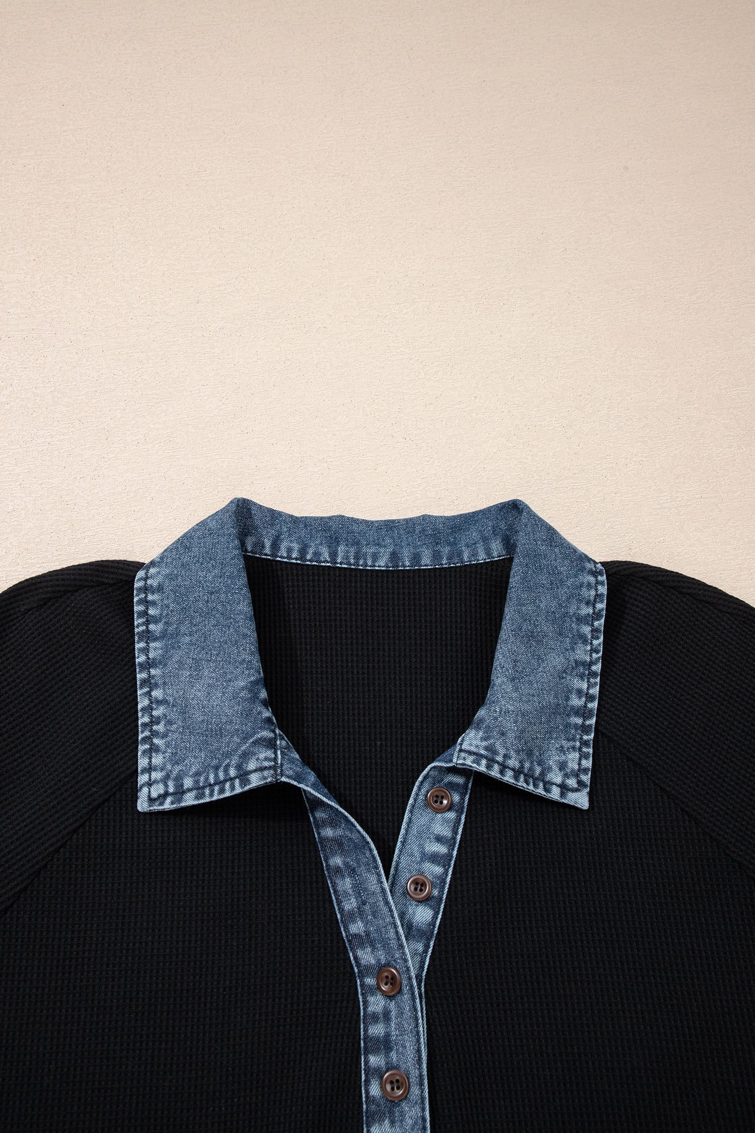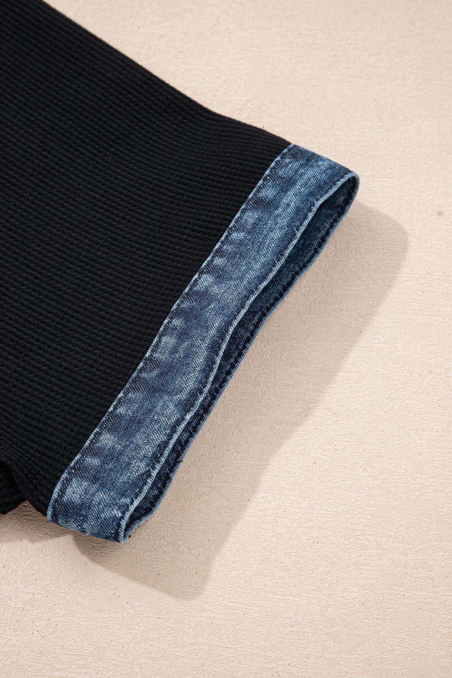 Made by waffle knit fabric, this plus top is textured and comfy.
