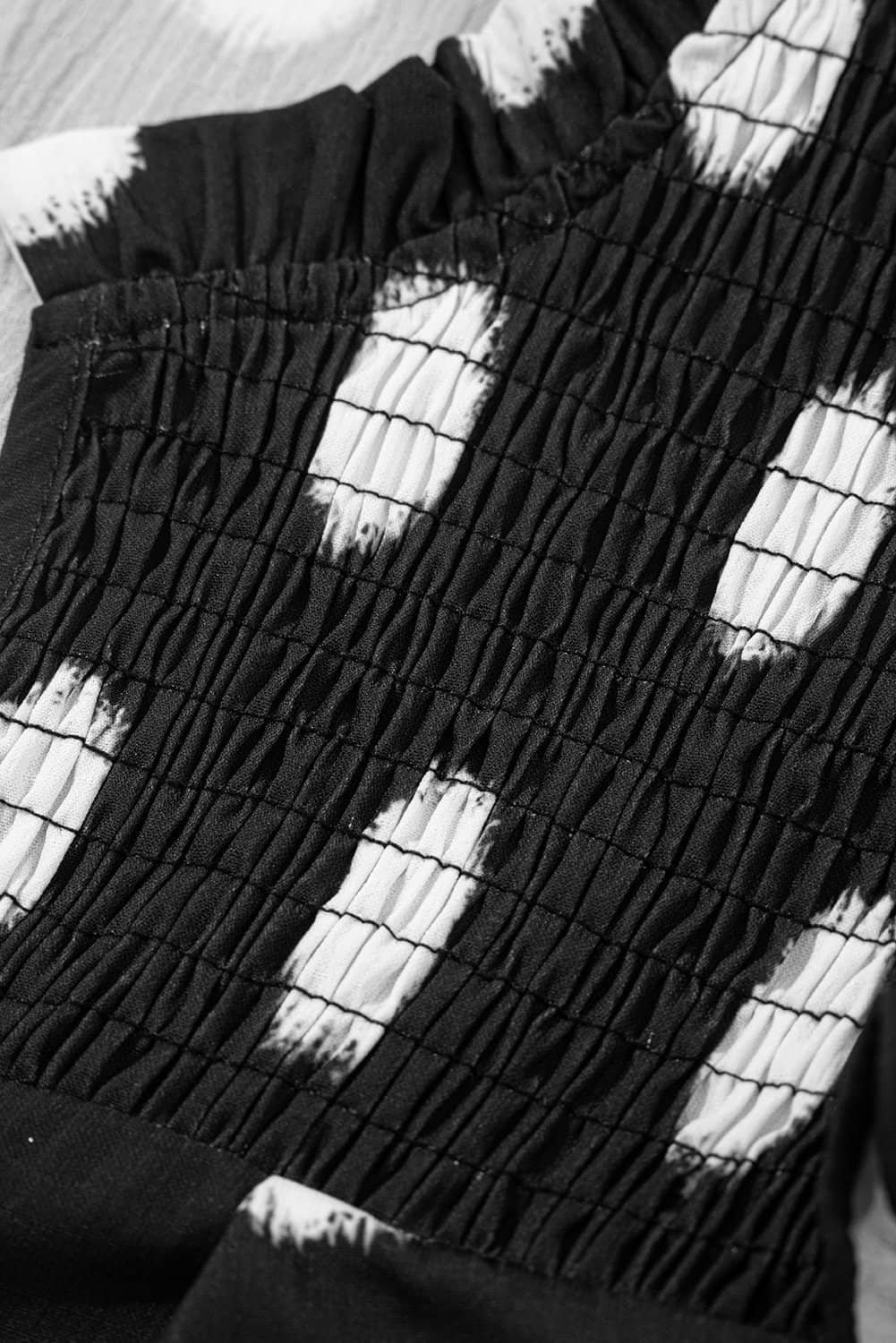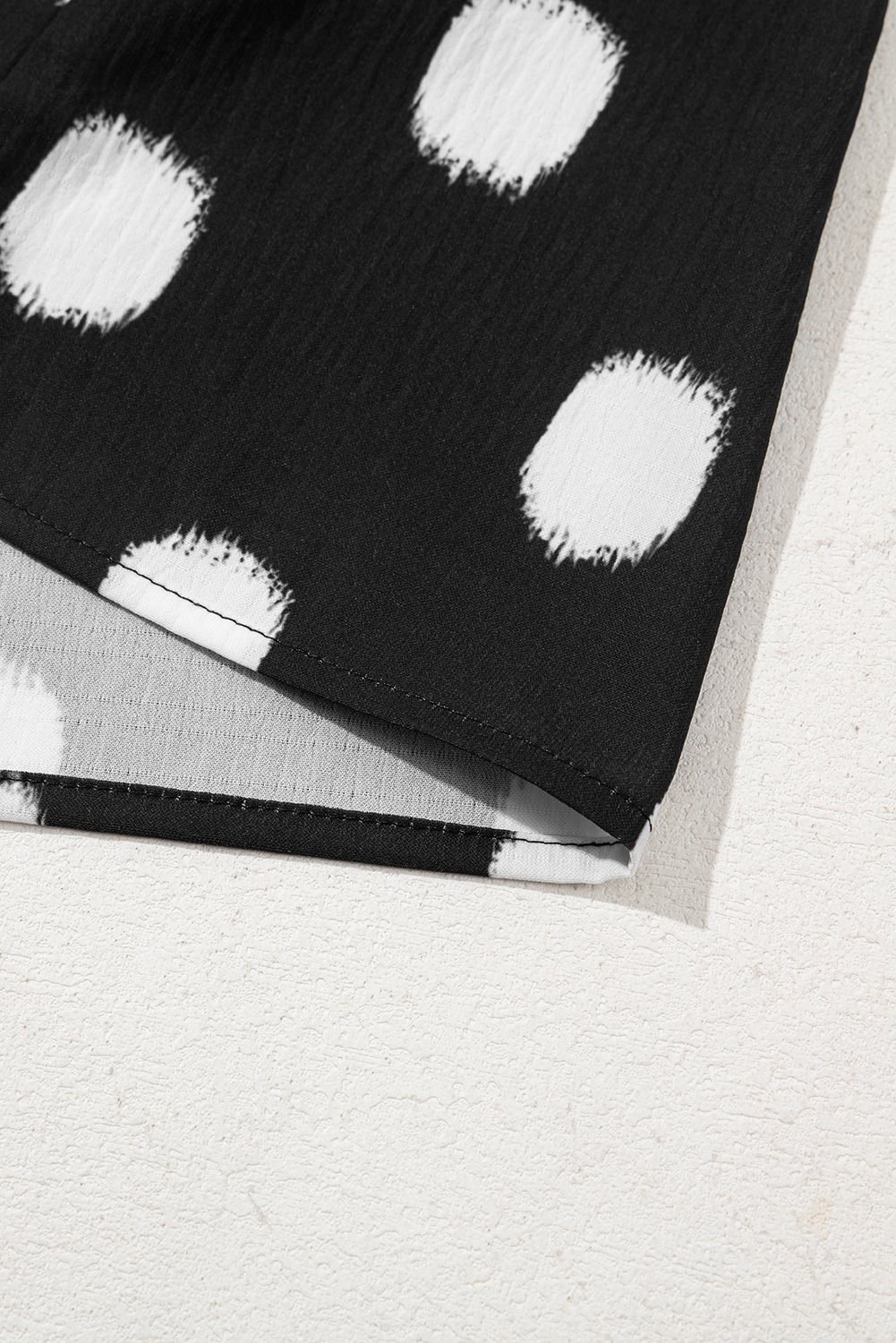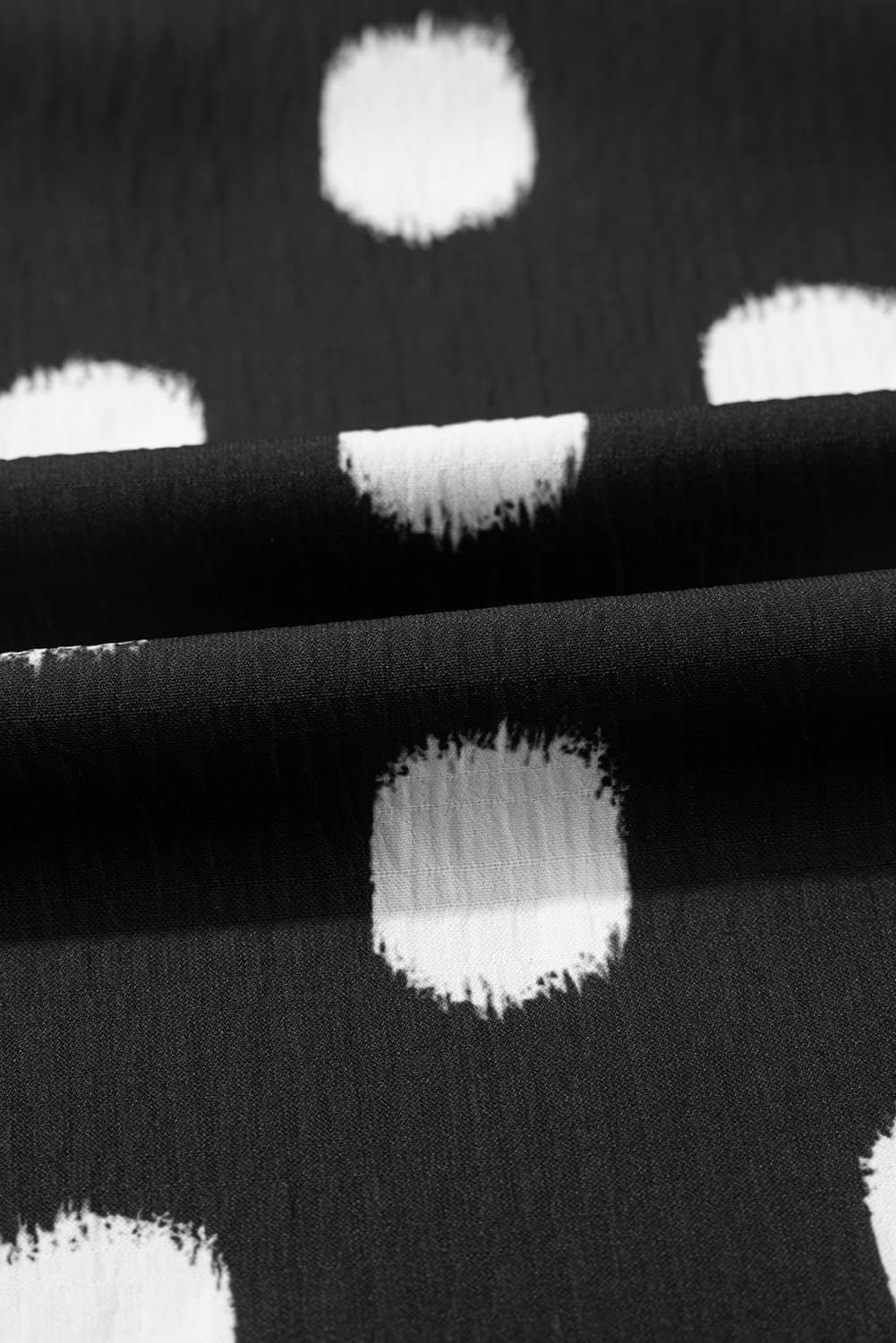 Be the first to review “Black Polka Dot Print Shirred Yoke Notched Neck Balloon Sleeve Blouse”