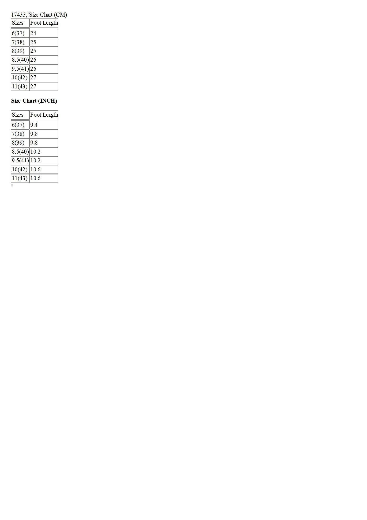 Size Chart (INCH)