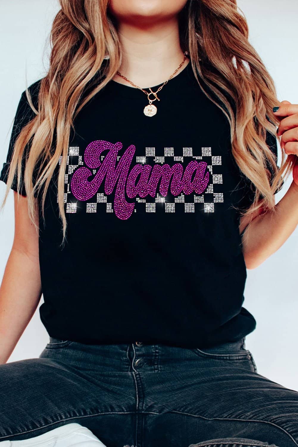 - The “MAMA” graphic, adorned with rhinestones, adds a touch of sparkle.