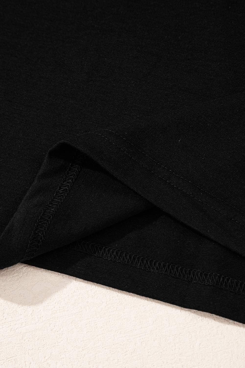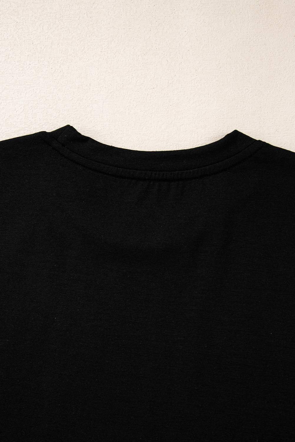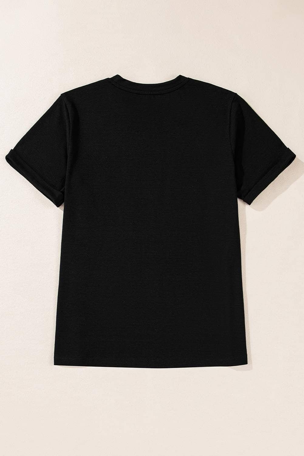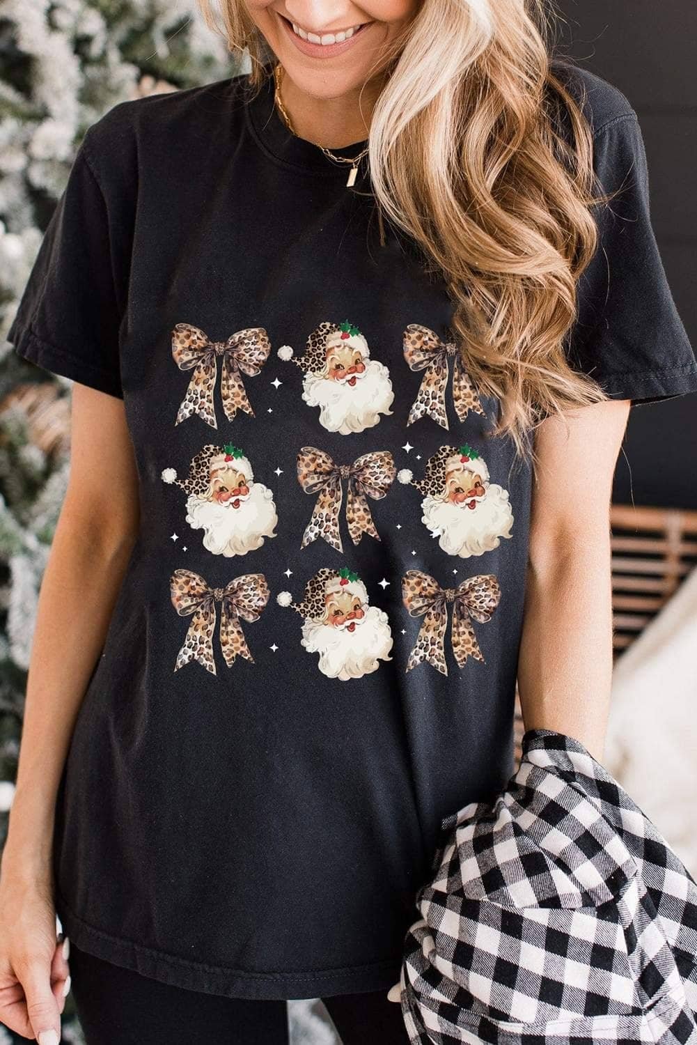 Black Santa Claus Leopard Bow Print Crew Neck Casual T Shirt