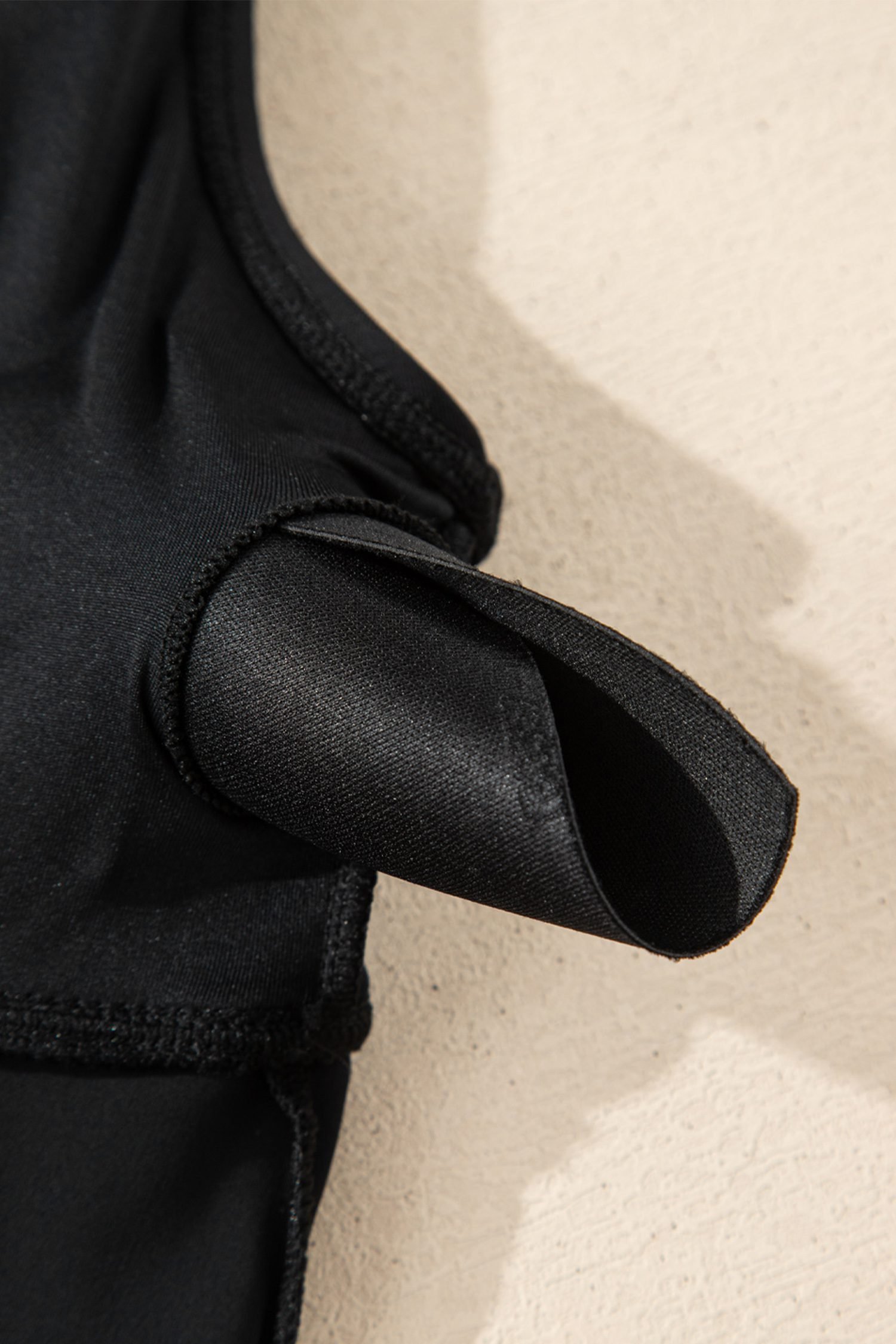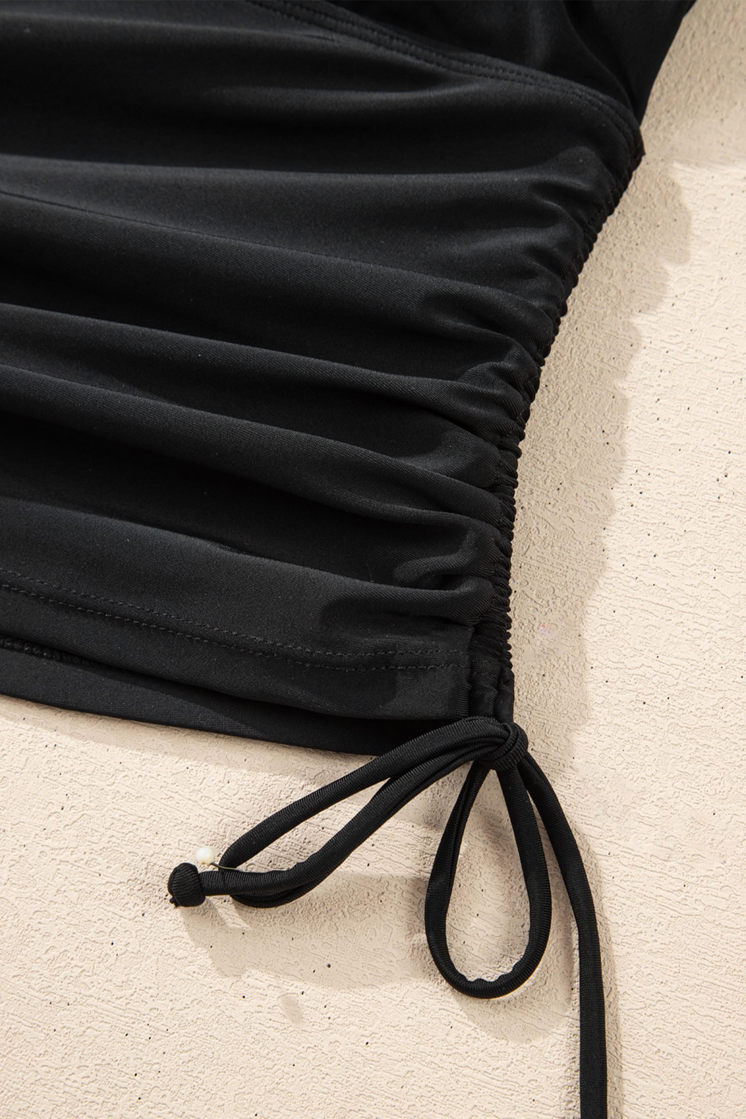 It has padded cups, adjustable straps, and drawstring at side.
