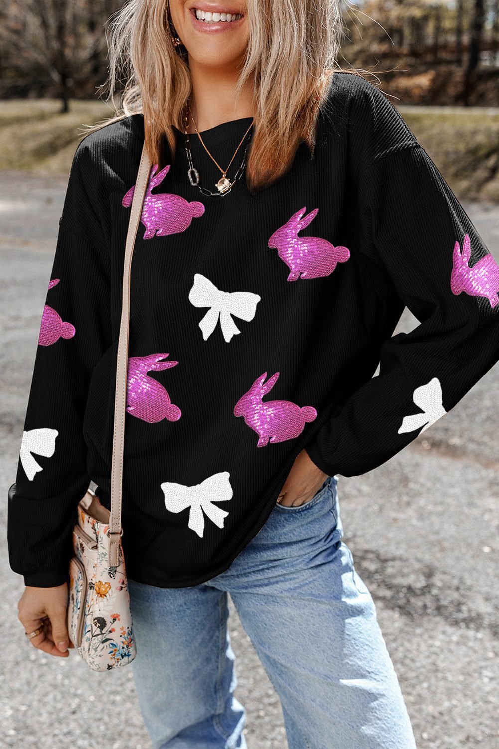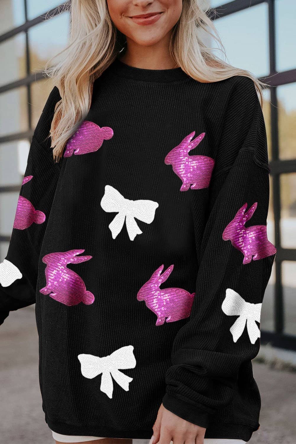 - Take this sequin graphic sweatshirt to your wardrobe.