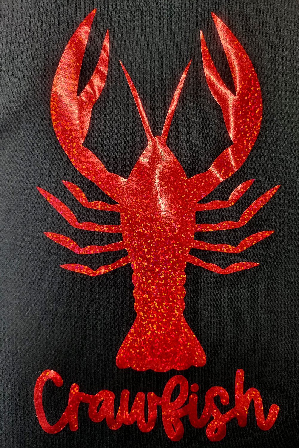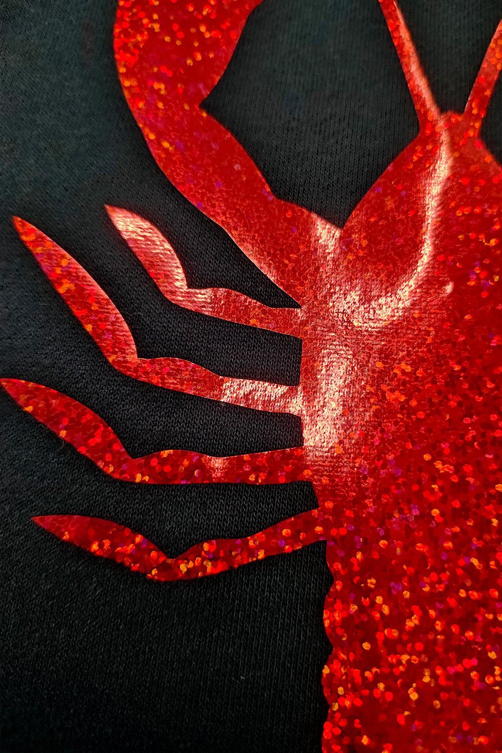 - A playful crawfish graphic with a shimmering finish looks eye-catching.