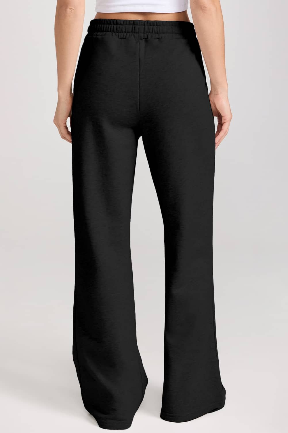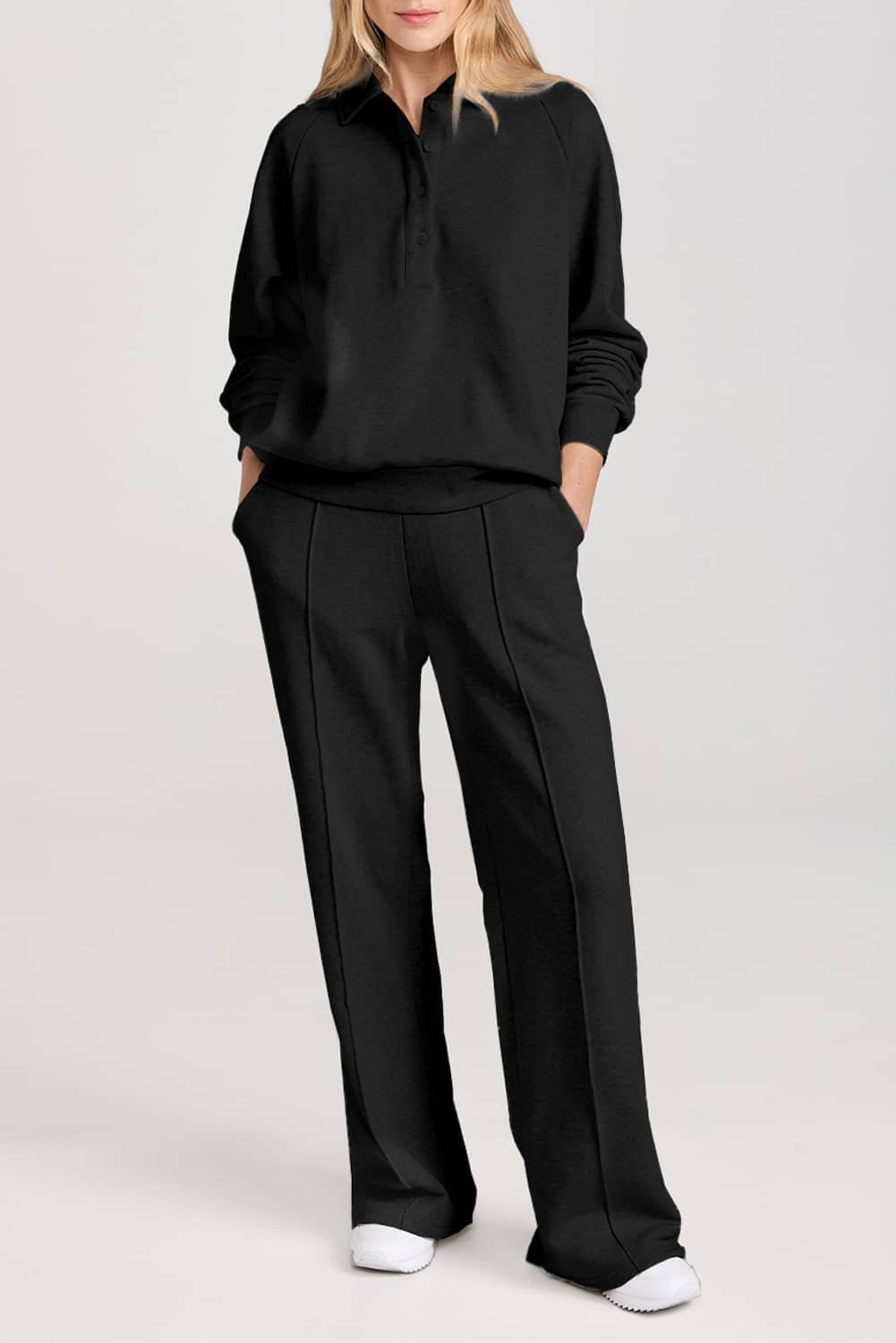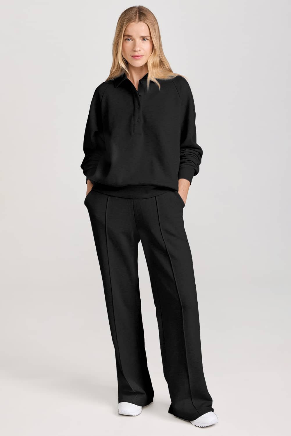 Black Solid Collared Sweatshirt And High Waist Pants Active Set