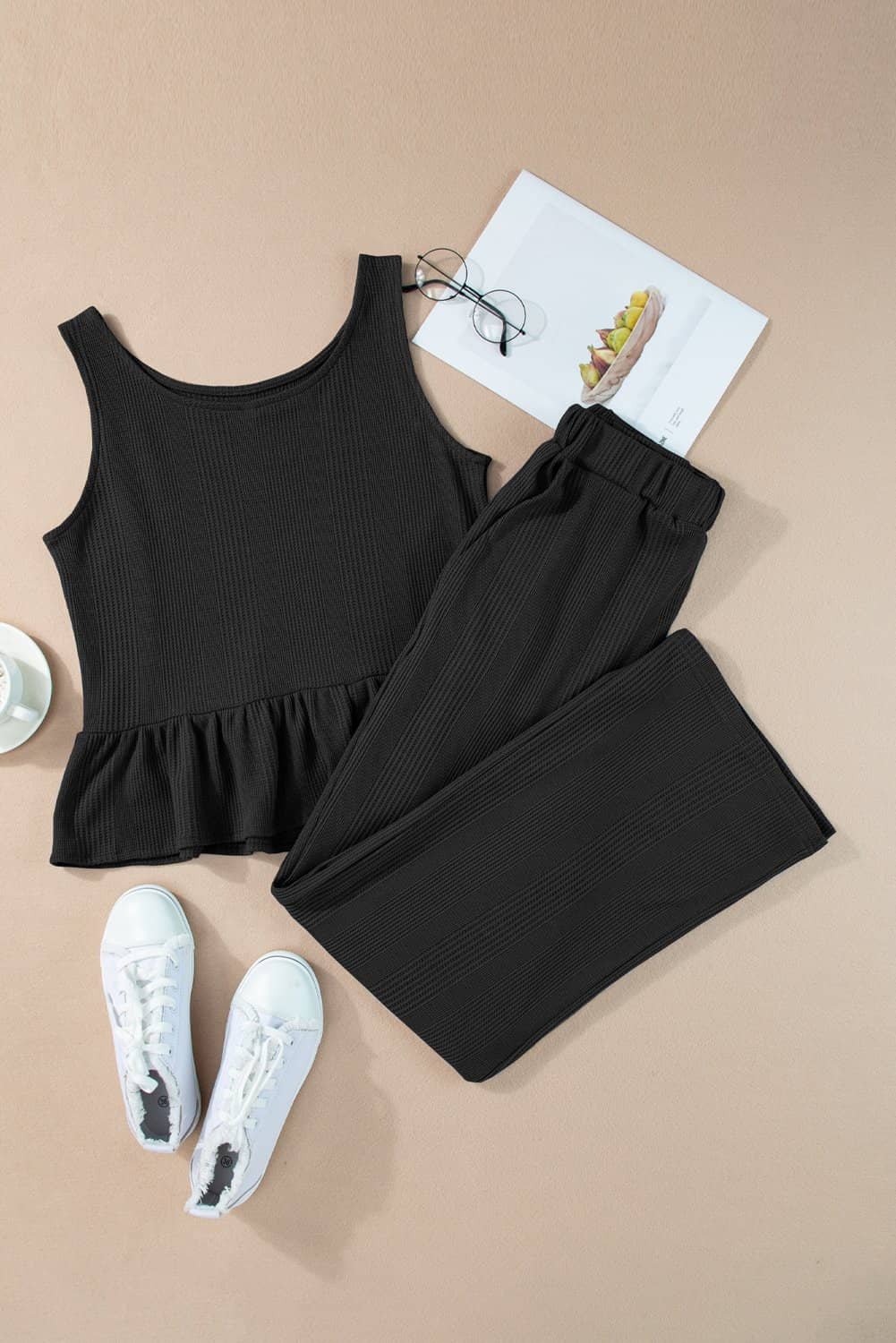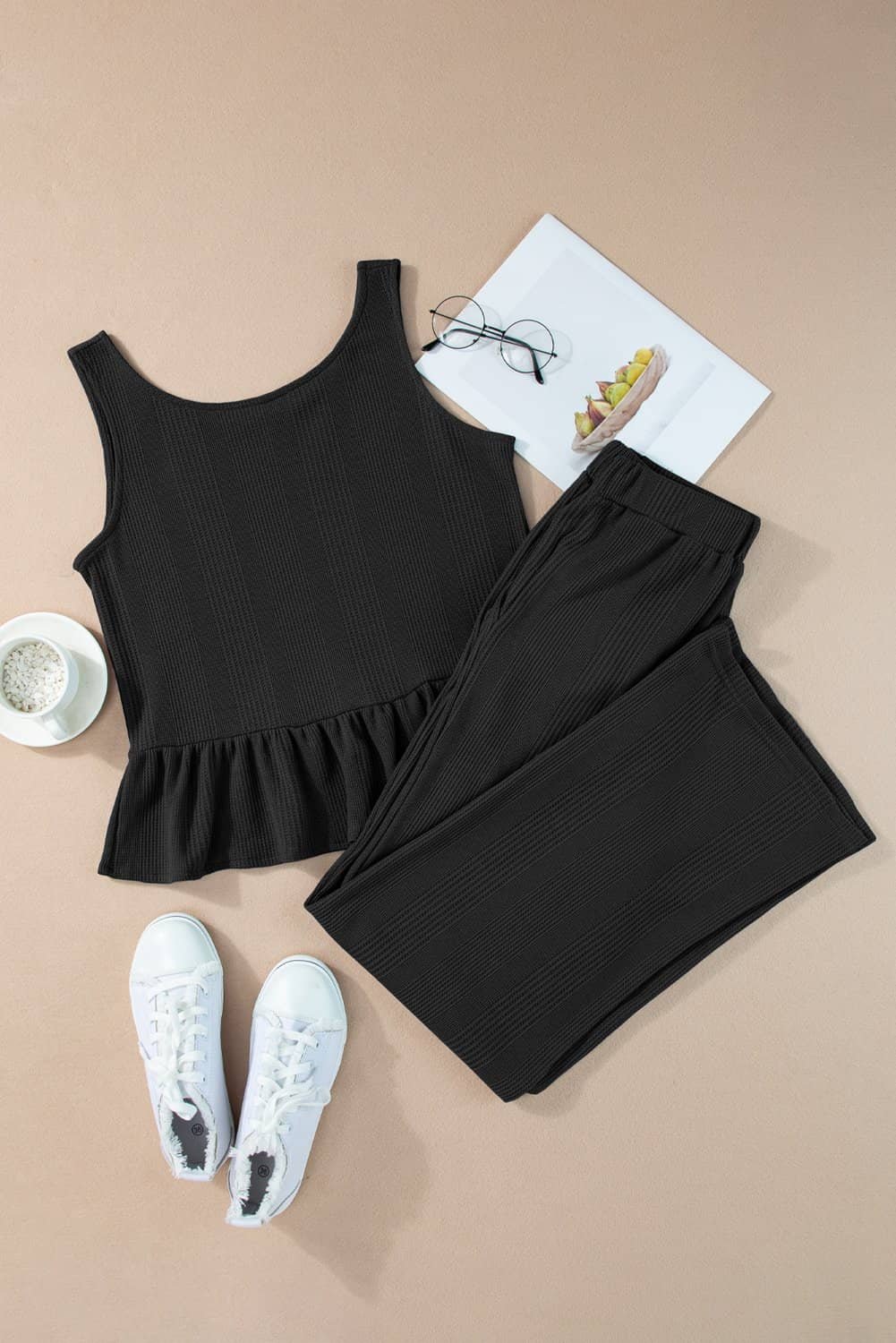 Add a feminine flair with a ruffled hem tank top that brings a playful and romantic vibe.