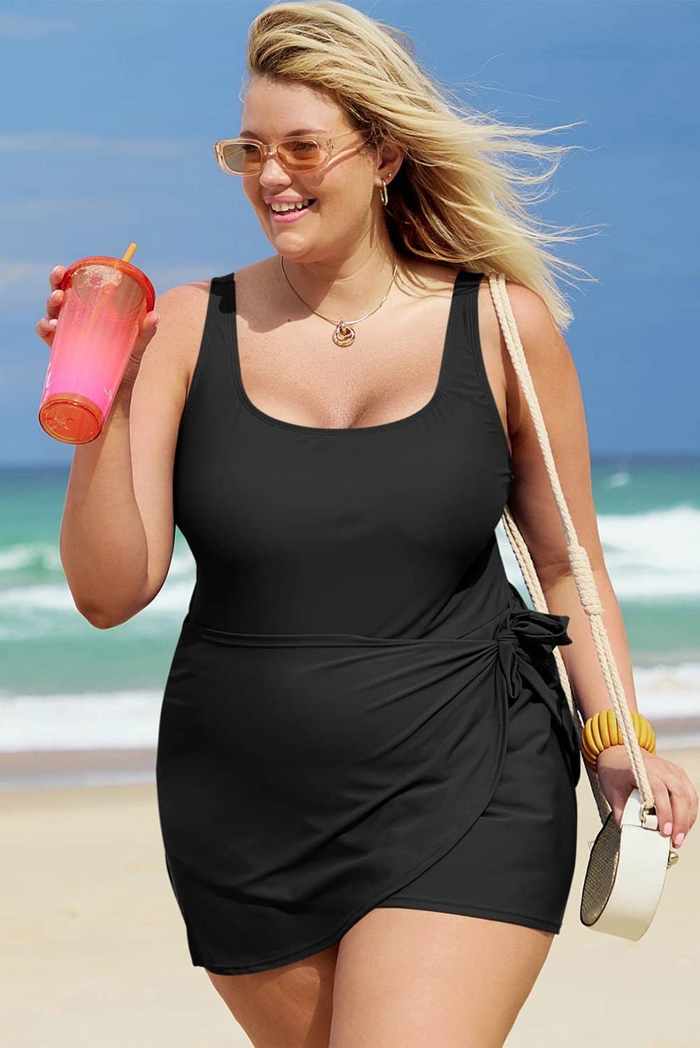 Plus size one-piece design offers a comfortable and secure fit.