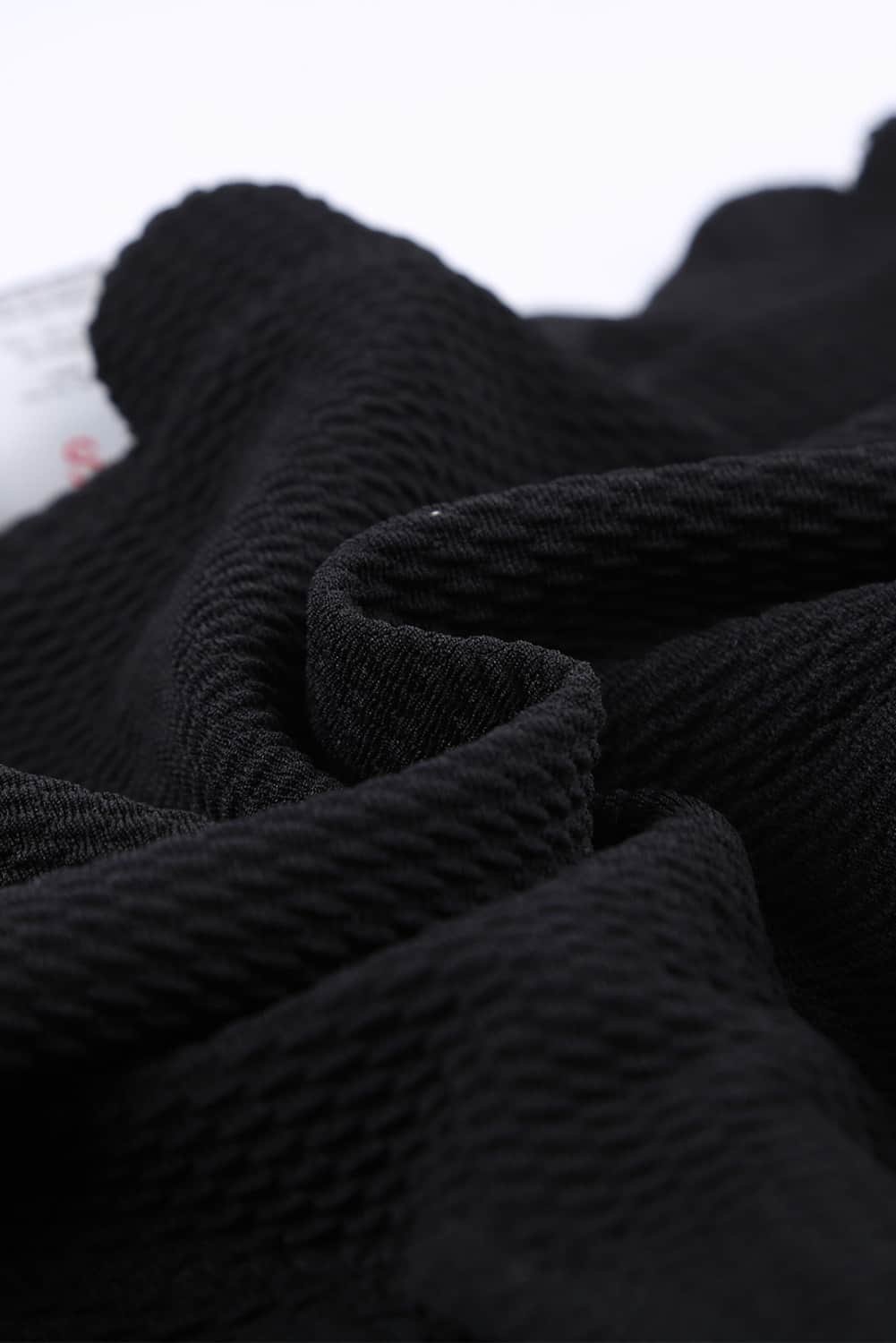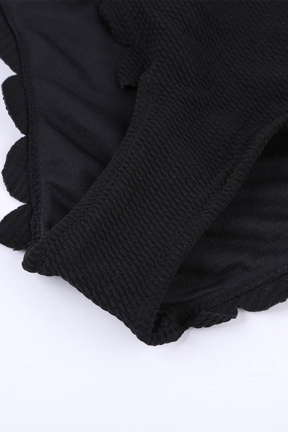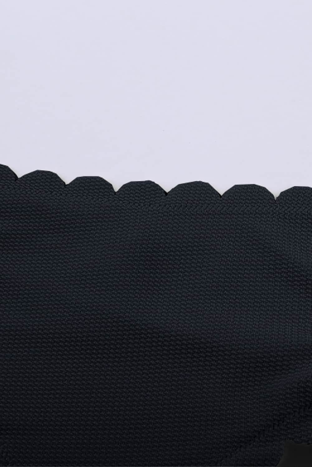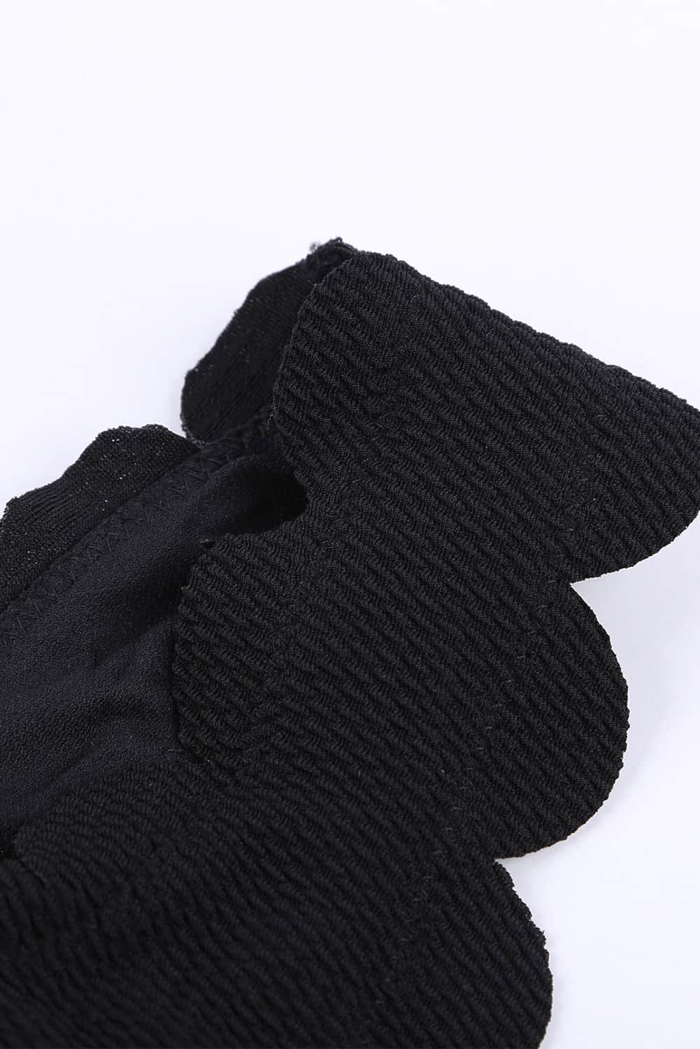 Black Solid Scalloped One-Shoulder Bikini