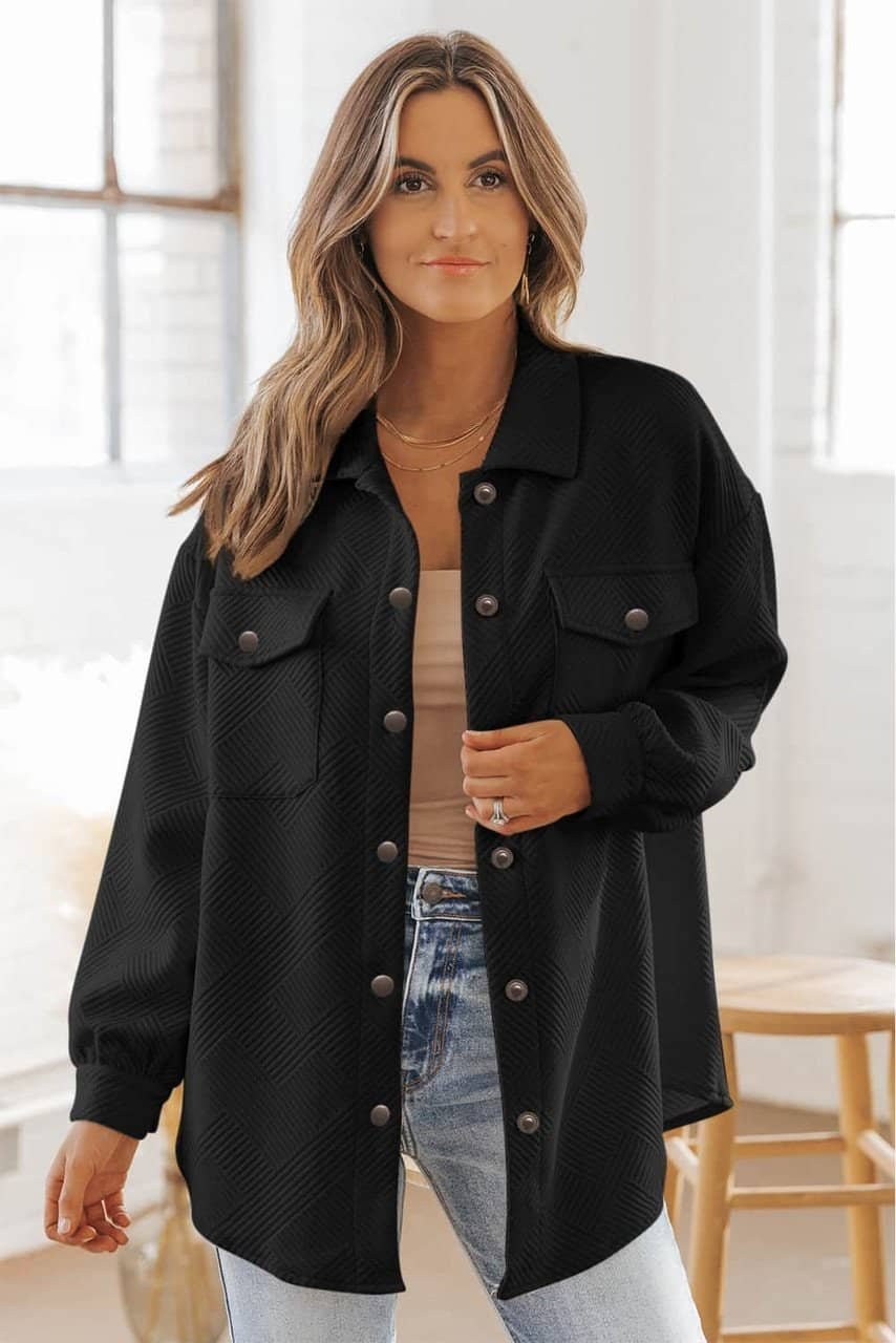 - Crafted from a textured fabric, it adds visual interest and depth to your look