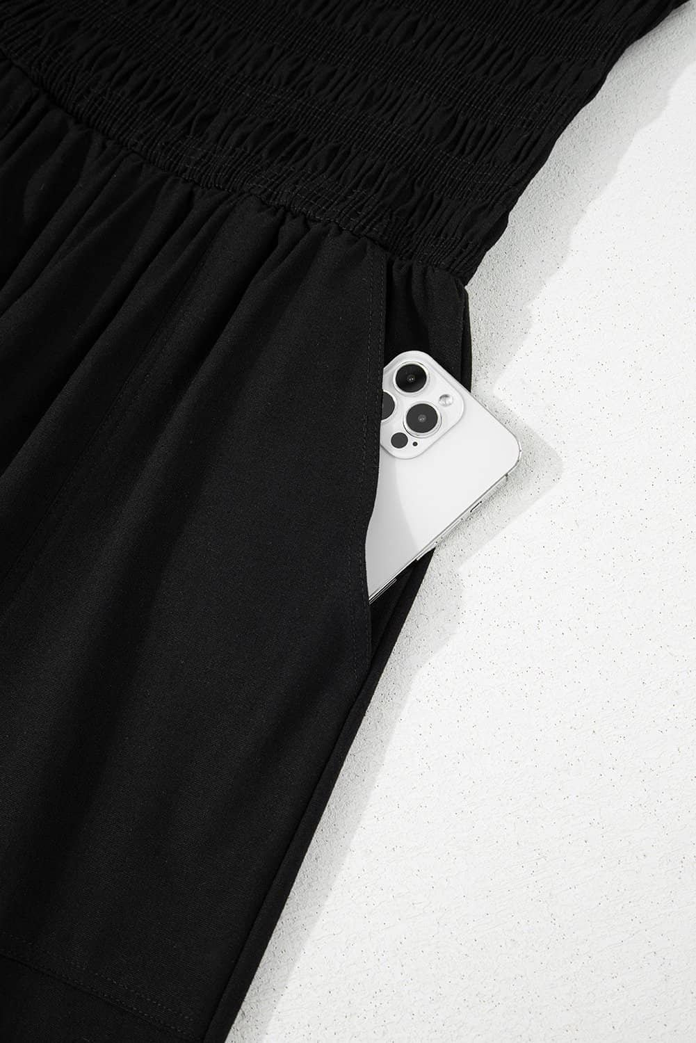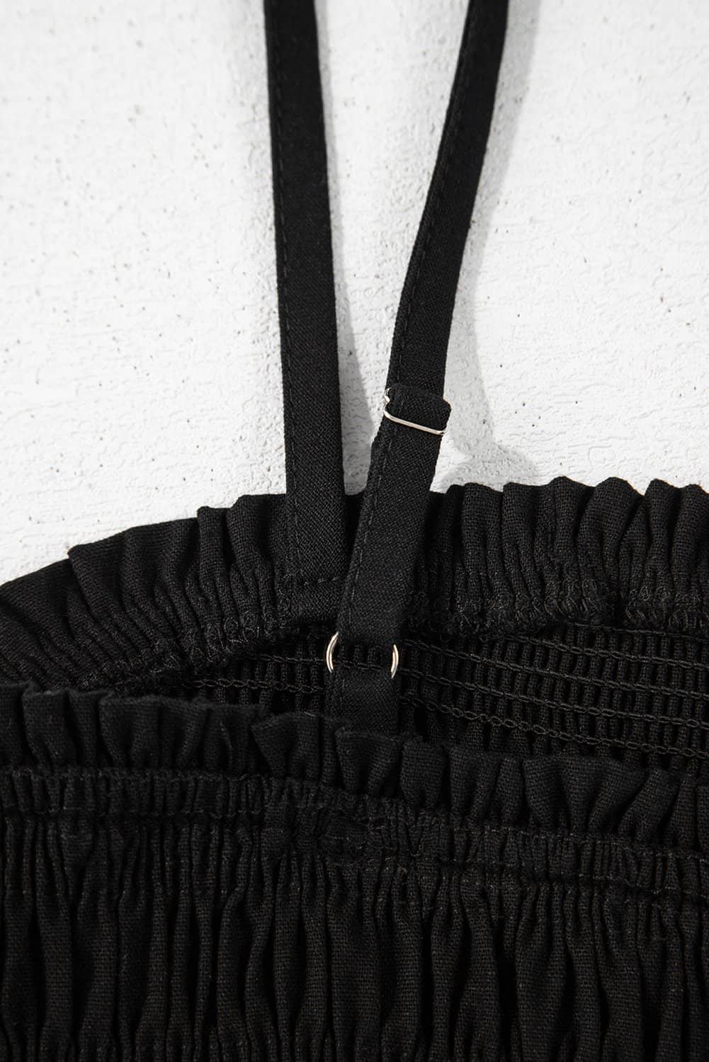 - Spaghetti straps and shirred bodice create a flattering fit.