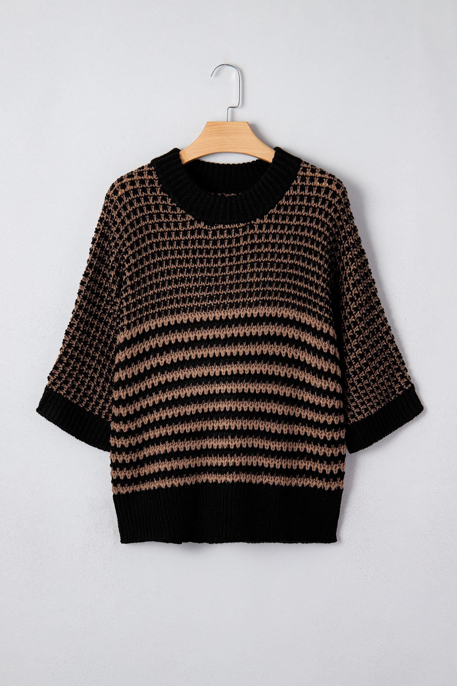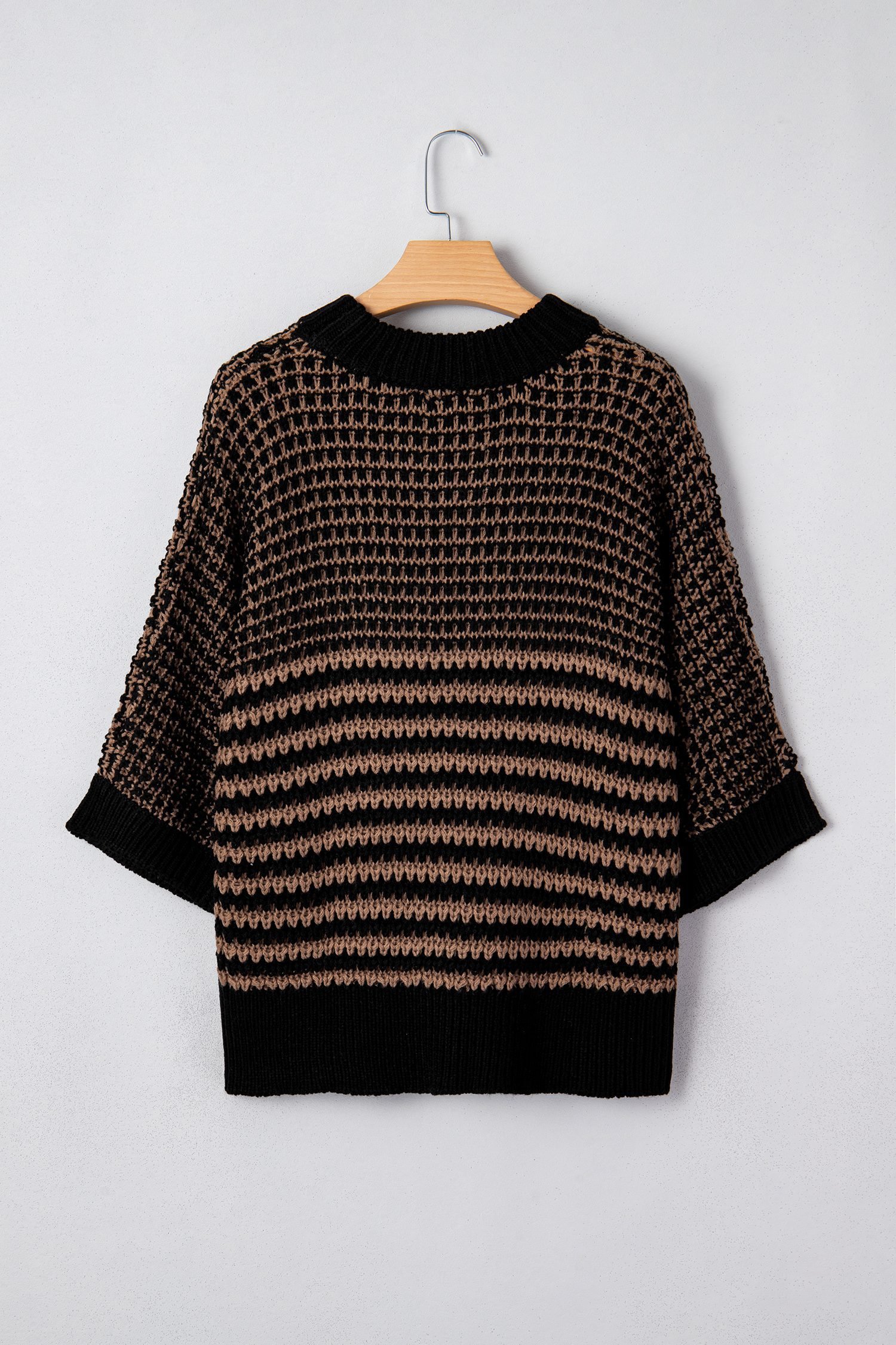 Oversized striped sweater pairs easily with jeans or leggings.