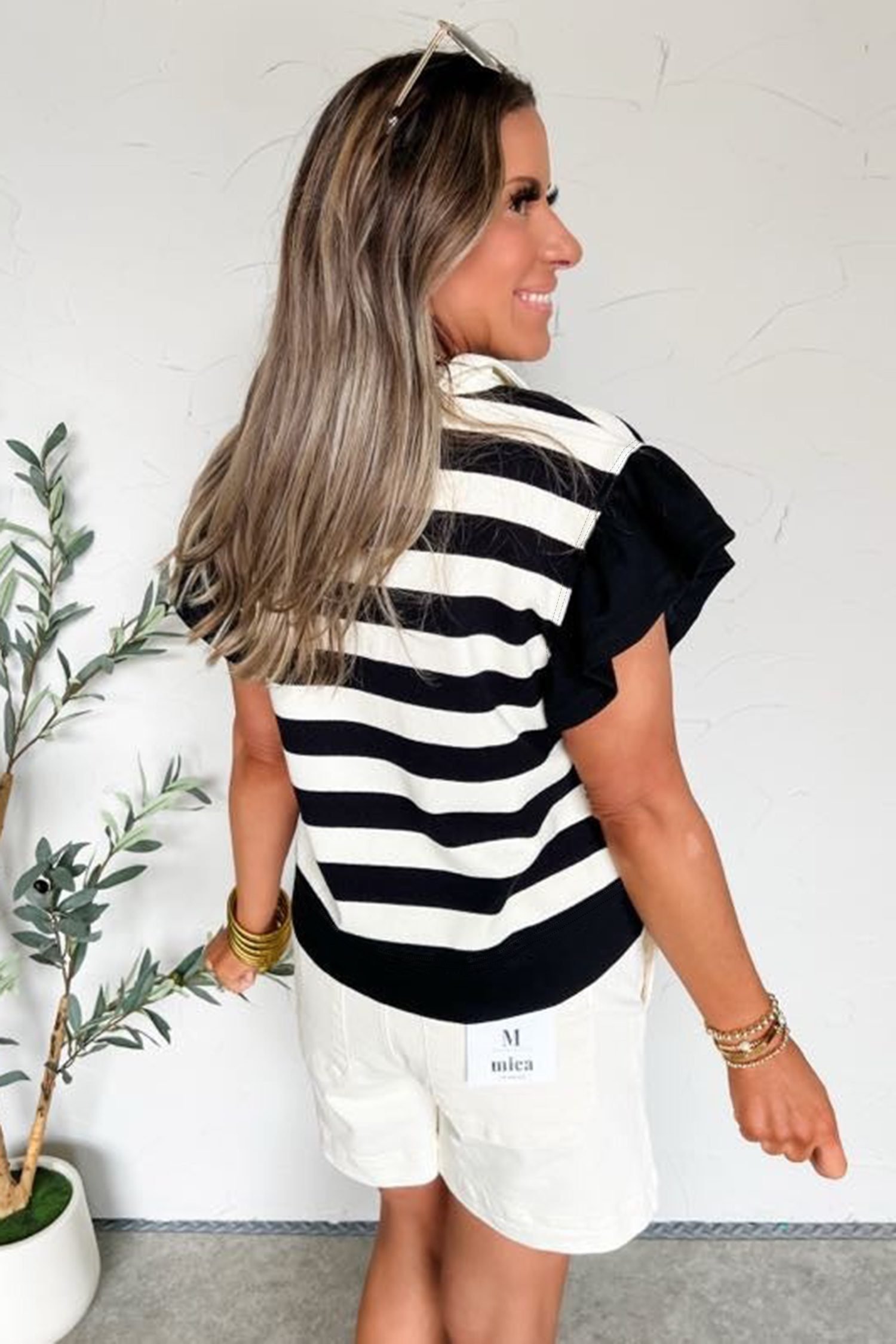 Ruffled short sleeves bring a soft, feminine touch to casual outfits.