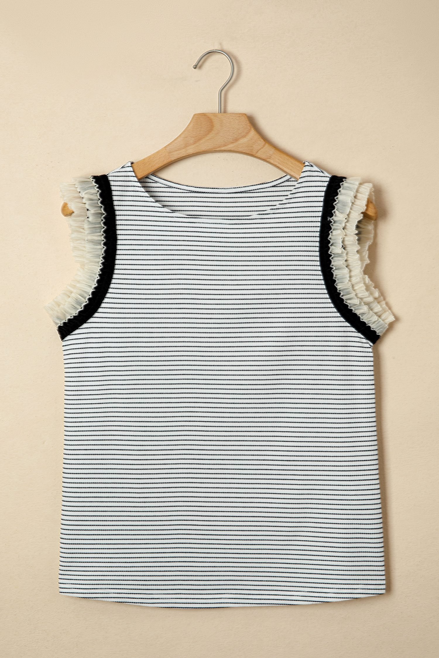 The fun stripes pop against the dual ruffle trim of this tank.
