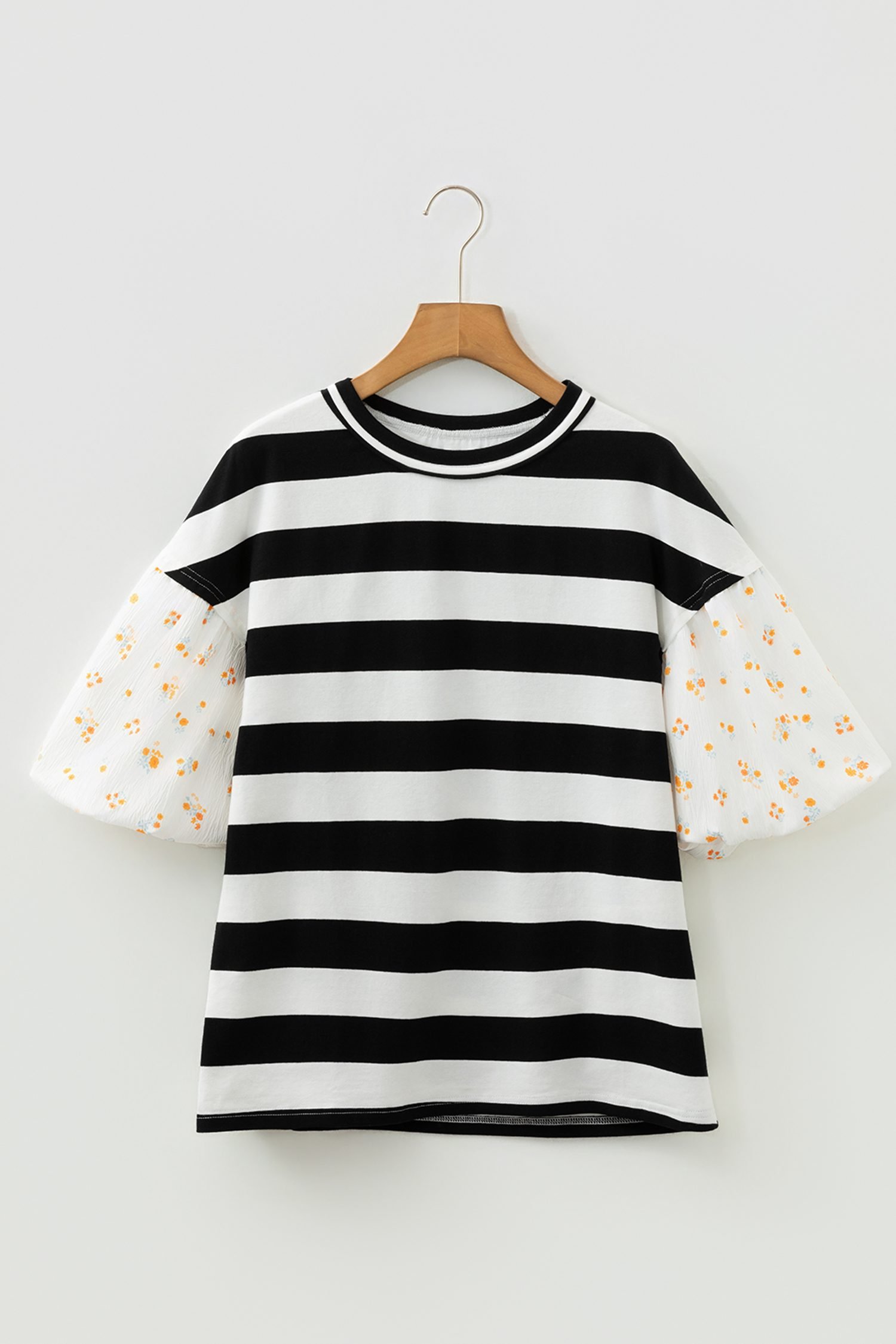 Be the first to review “Black Stripe Floral Print Puff Sleeve Patchwork Blouse”