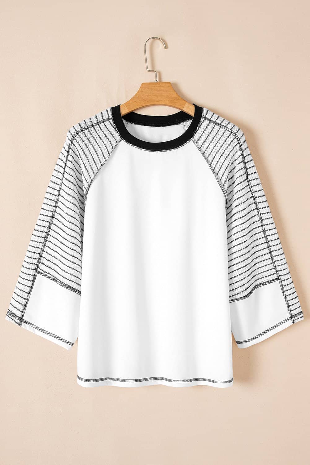 - This patchwork top has a chic look with striped raglan sleeves design.