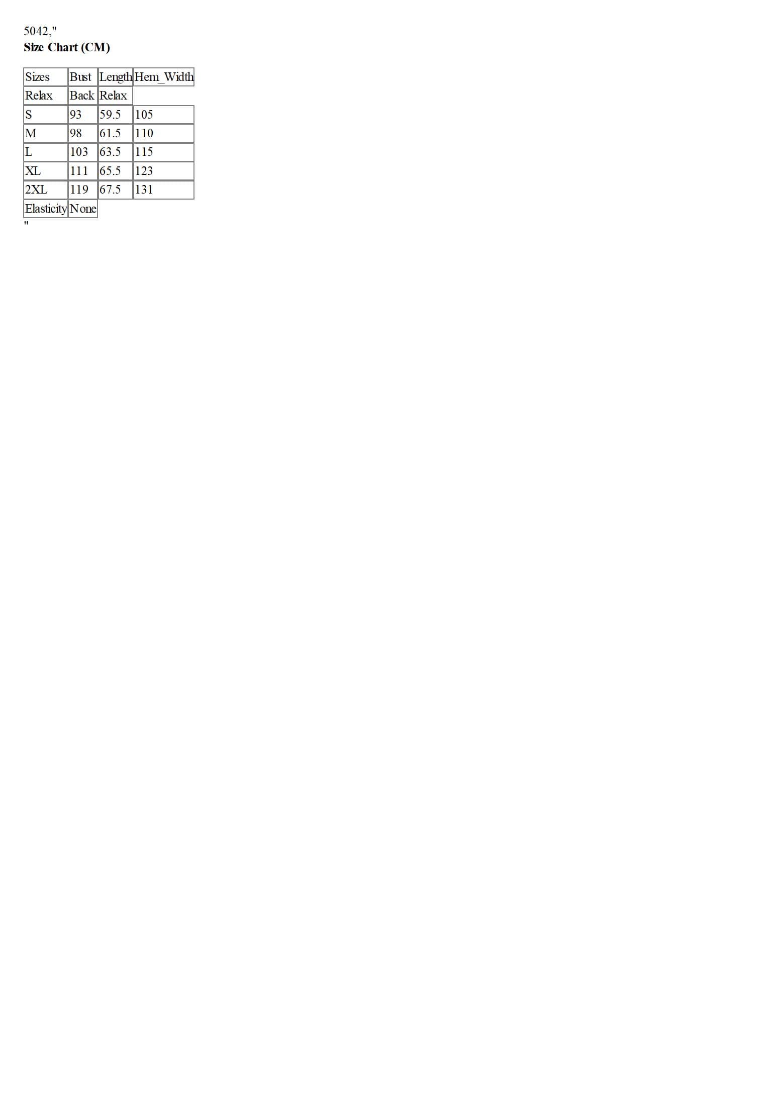 Size Chart (CM)