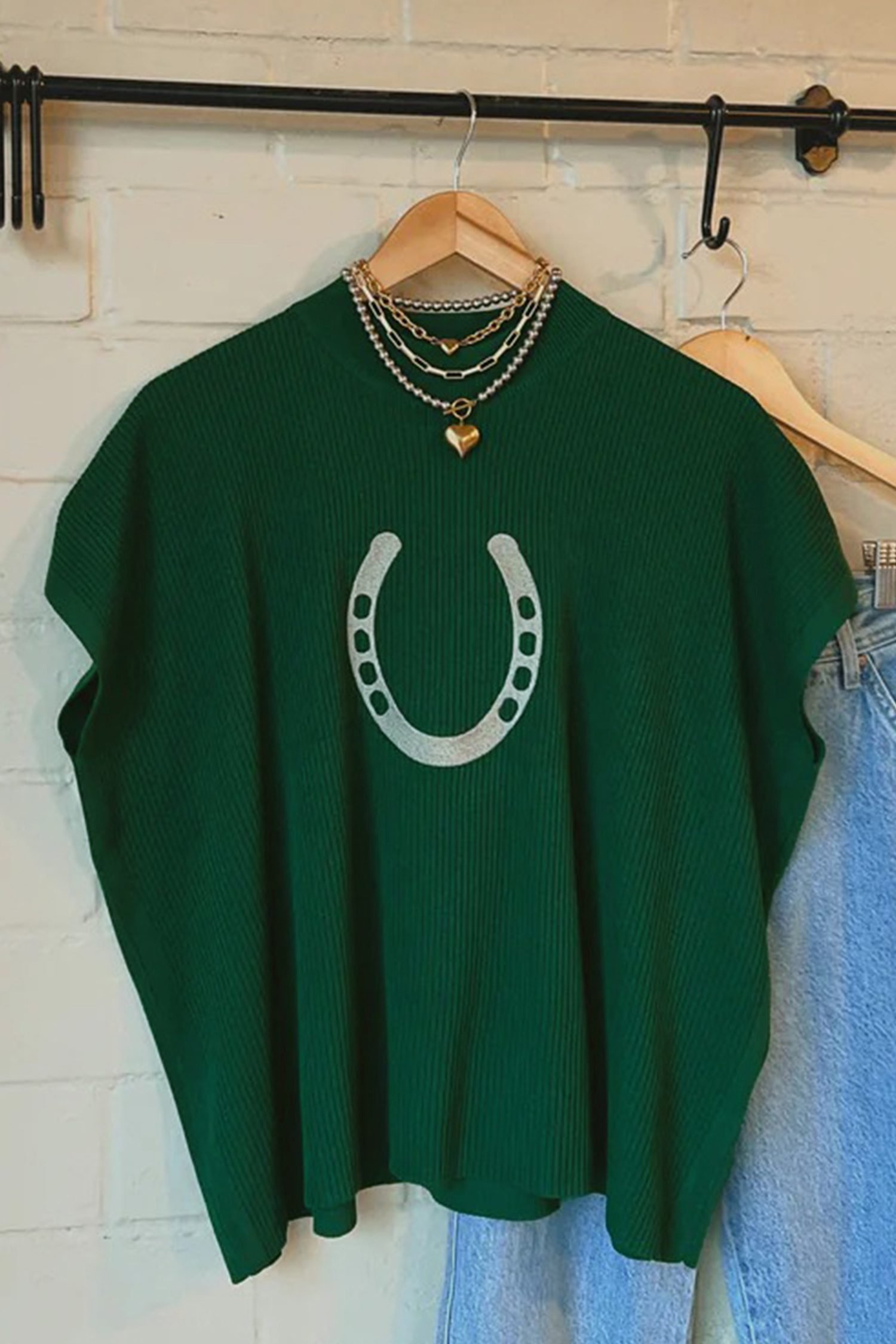 Featuring a delicate embroidered horseshoe pattern on the front.
