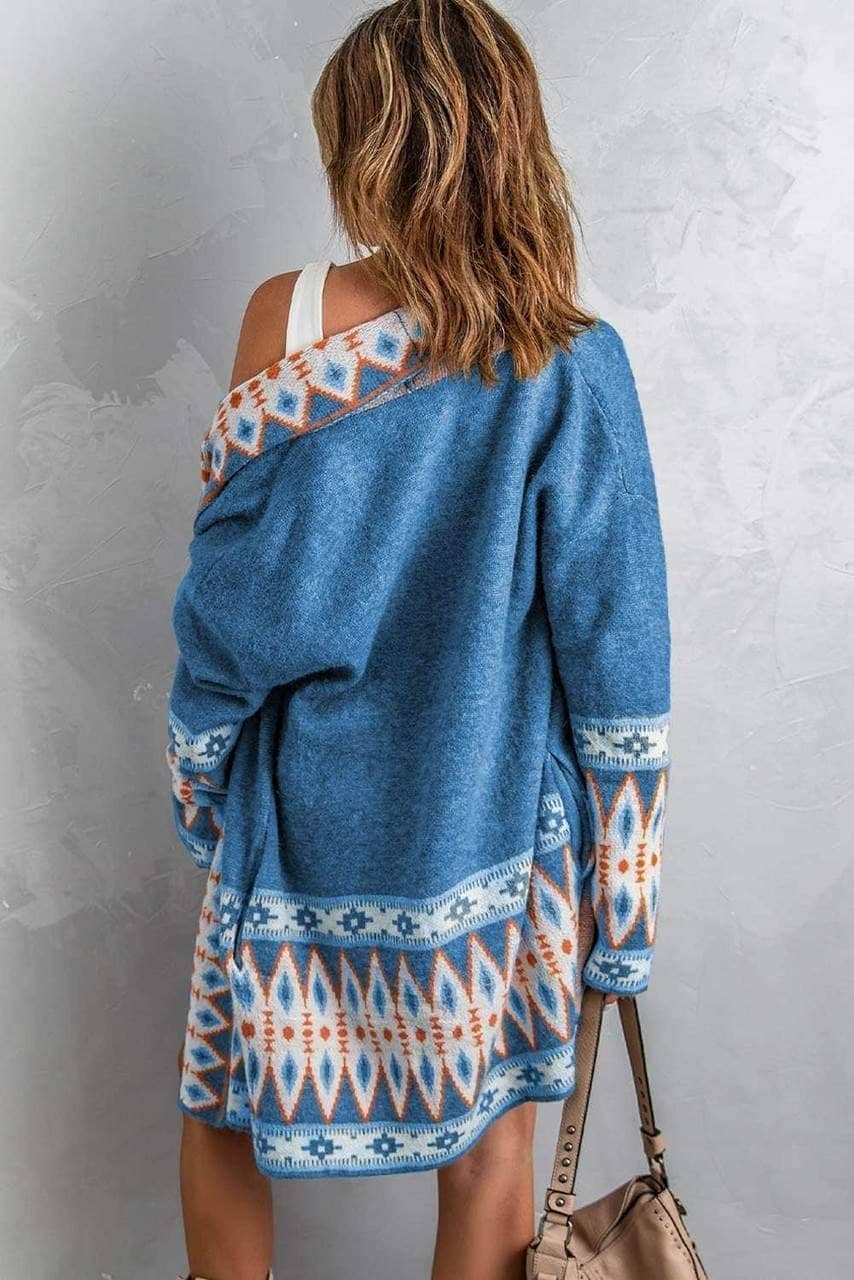 Aztec print in the cardigan is very stylish and unique