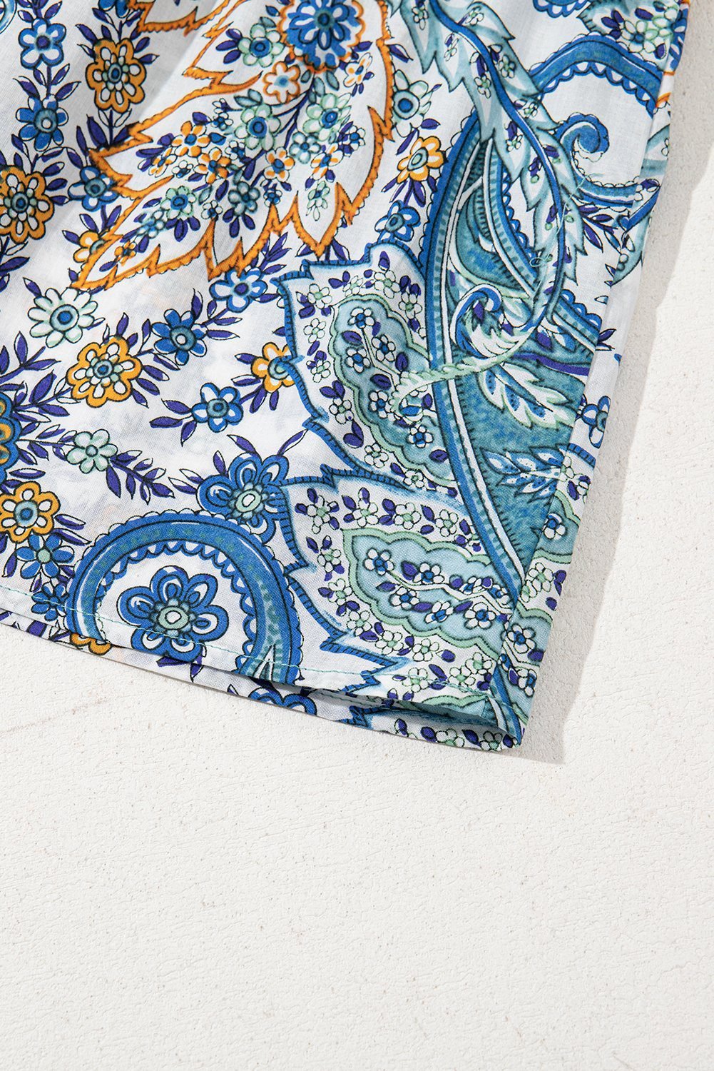 Be the first to review “Blue Bohemian Paisley Floral V Neck Short Sleeve Mini Dress”