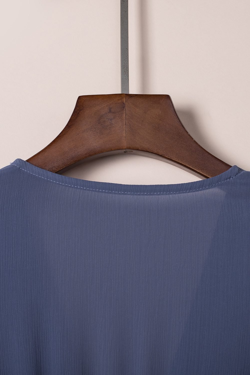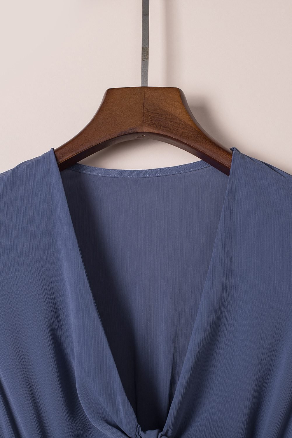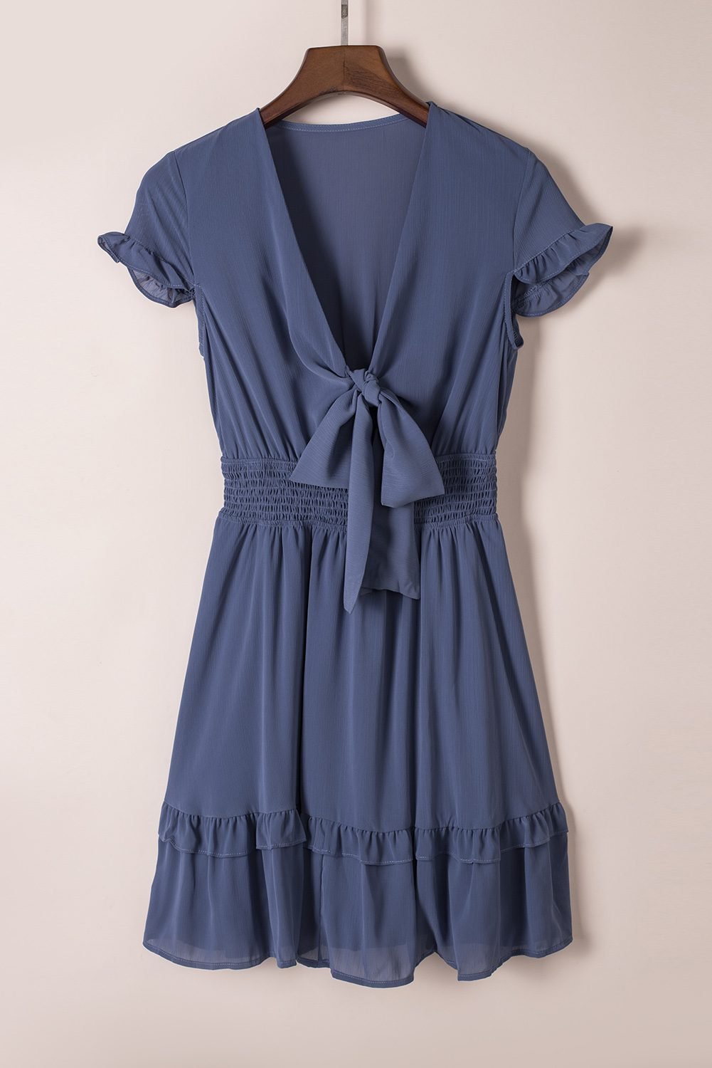 Blue Deep V Neck Self-tie Knotted Front Layered Flare Mini Dress