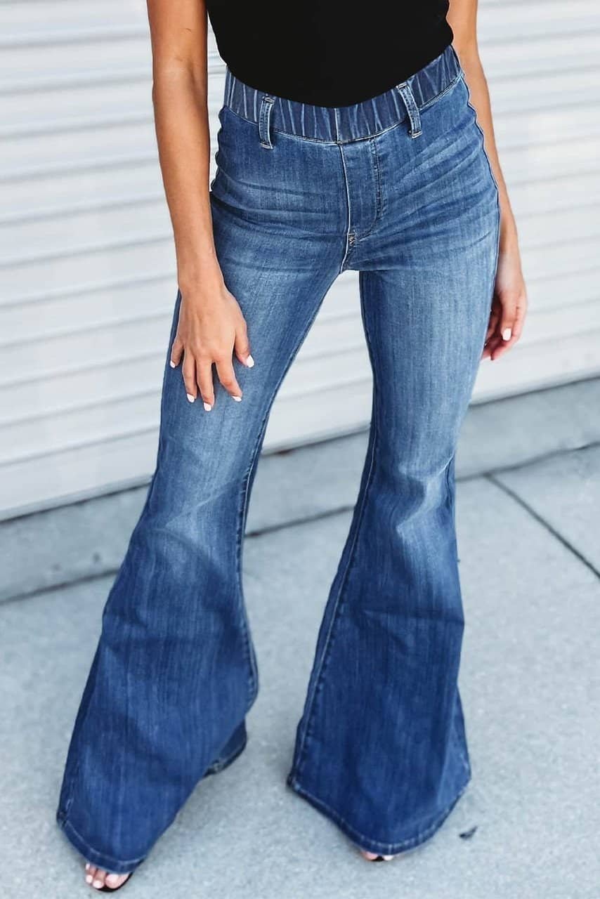 Blue Elastic High Waist Flare Jeans