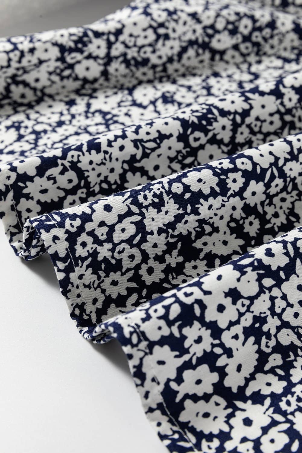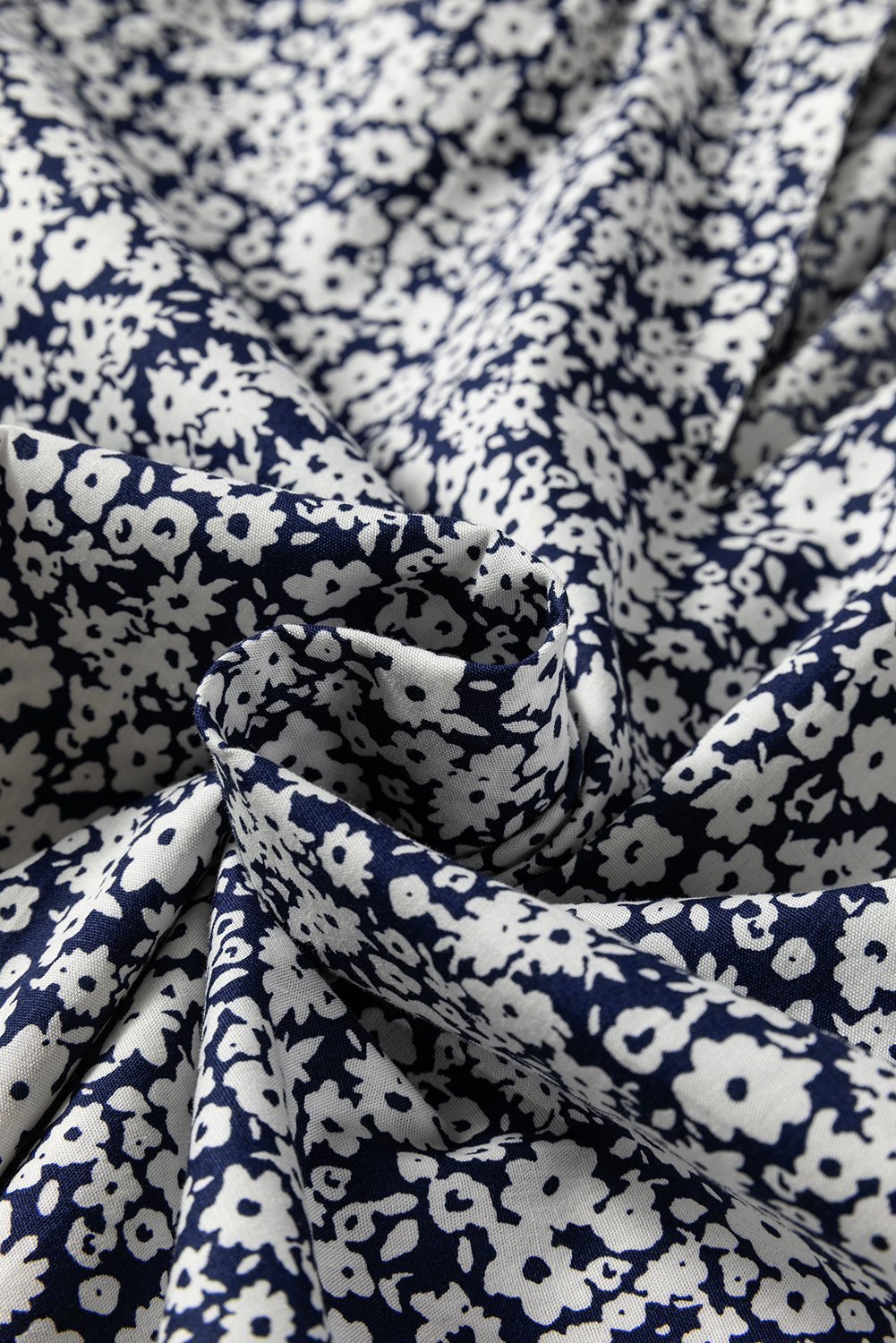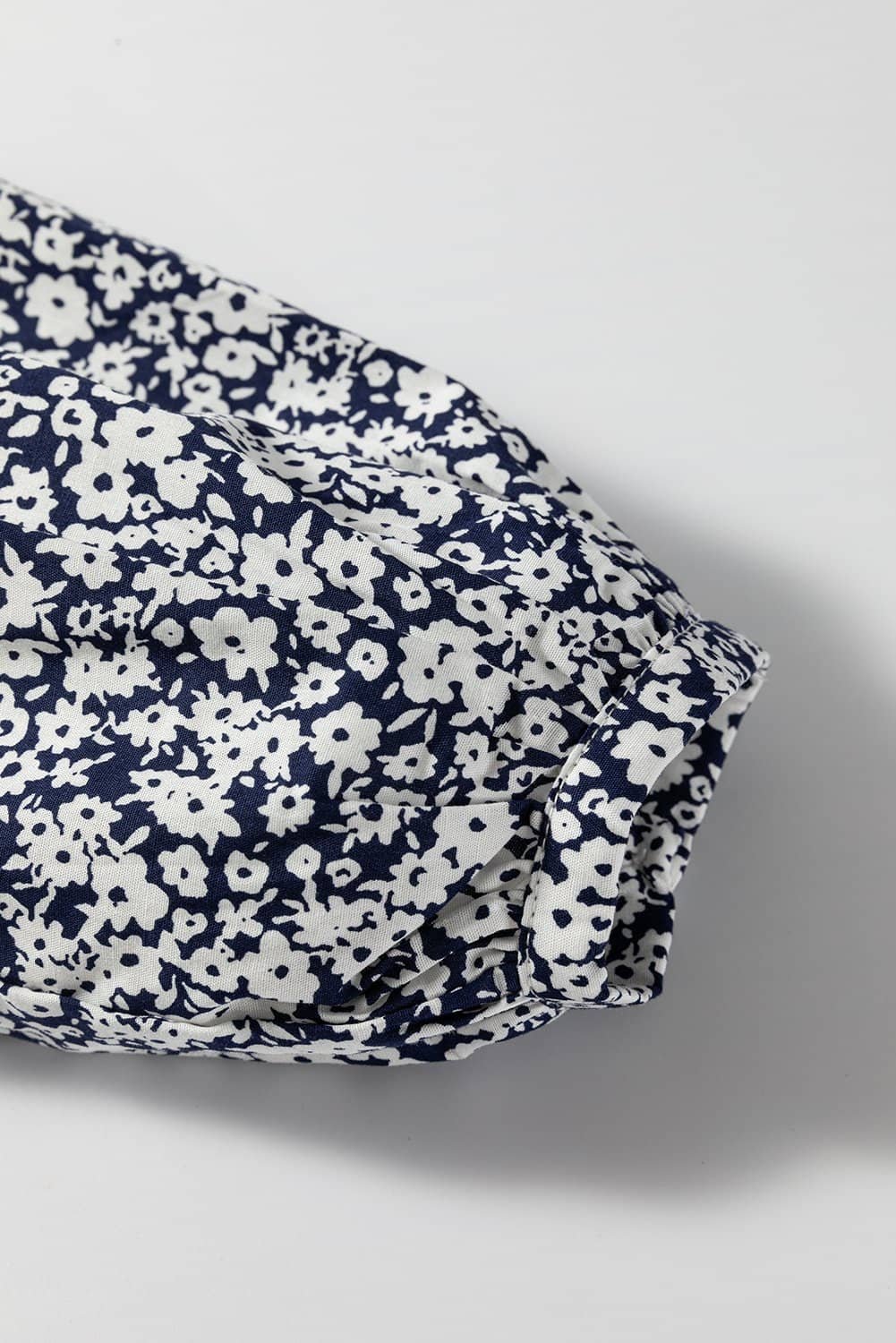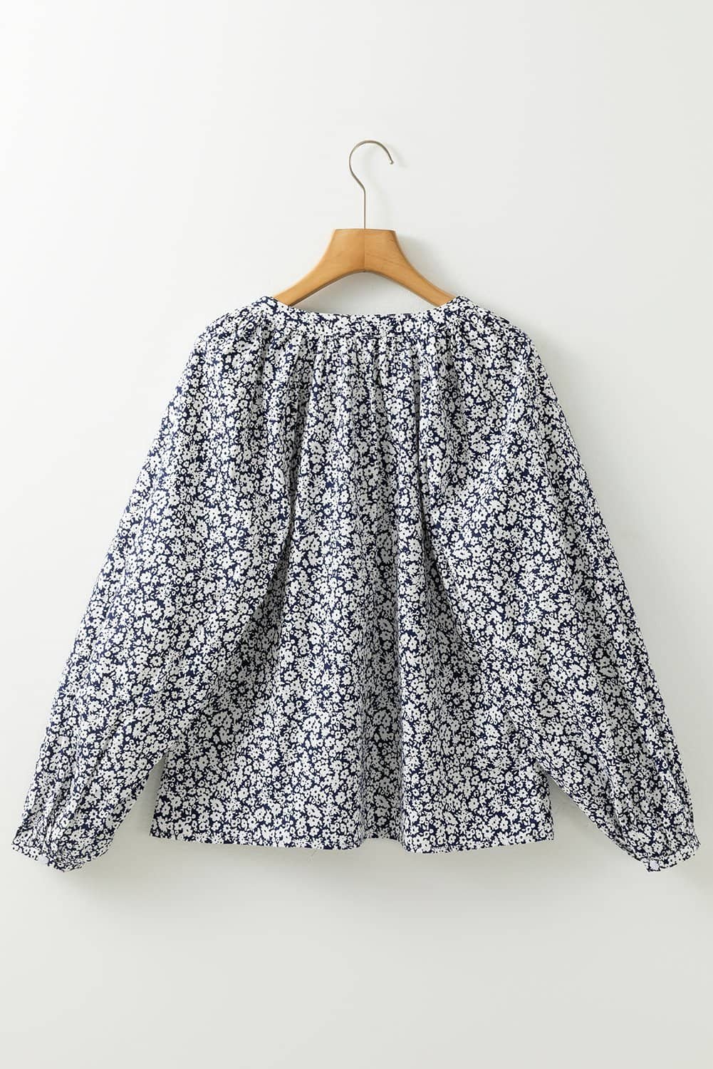 Blue Floral Print Notched V Neck Puff Sleeve Blouse