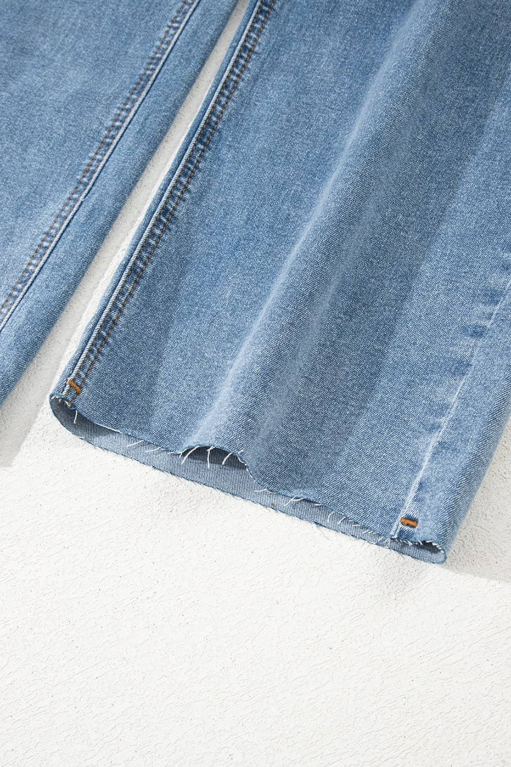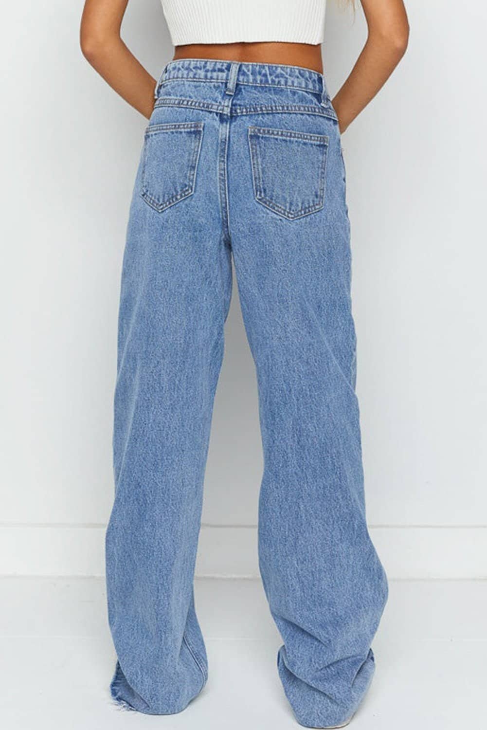 - These jeans feature an asymmetrical waist design for a unique look.