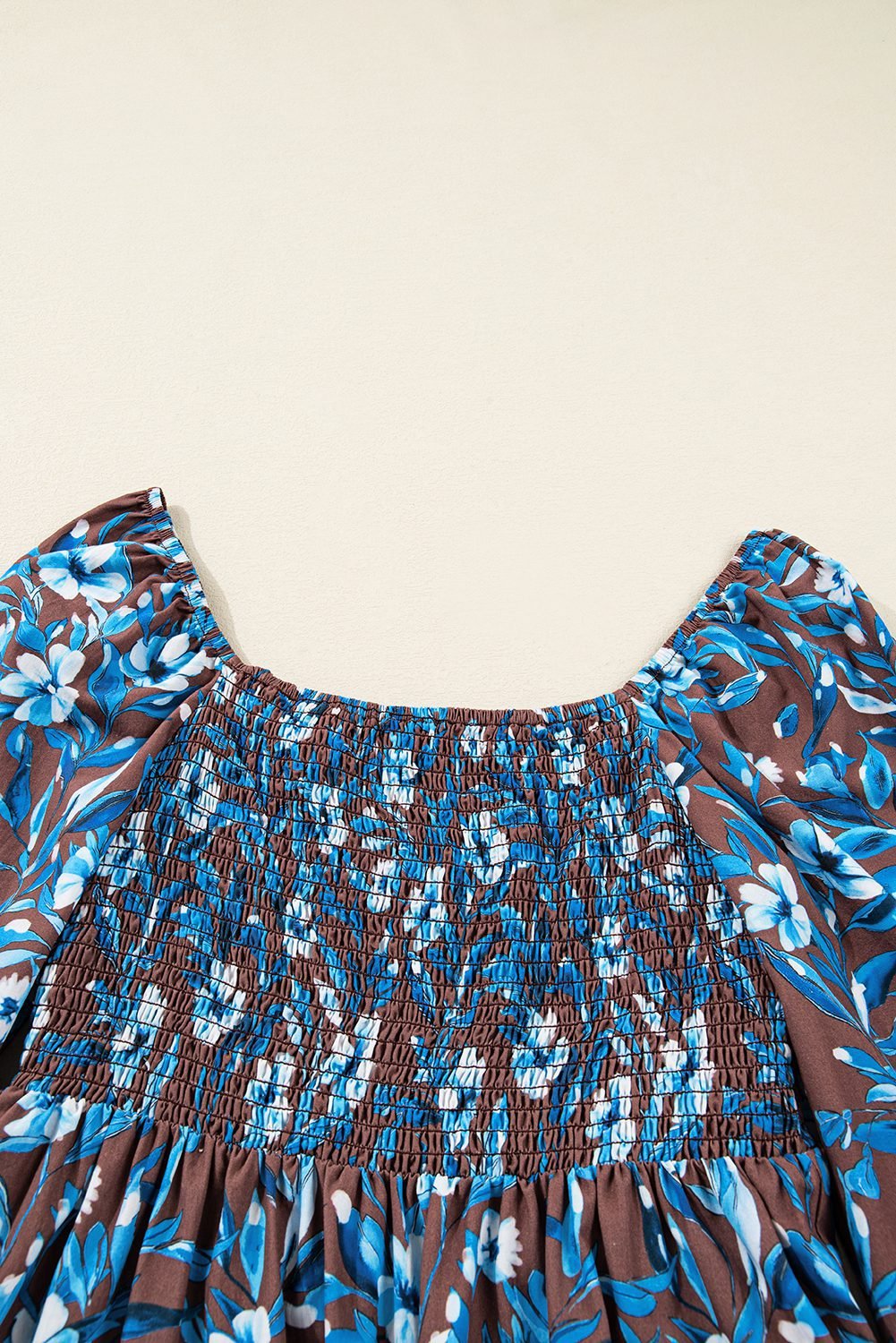 - Smocked bodice offers a comfortable, figure-flattering fit.