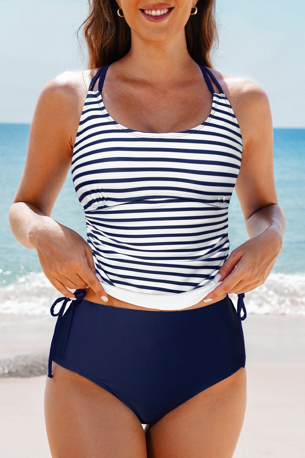 - Color block design for the tankini top.