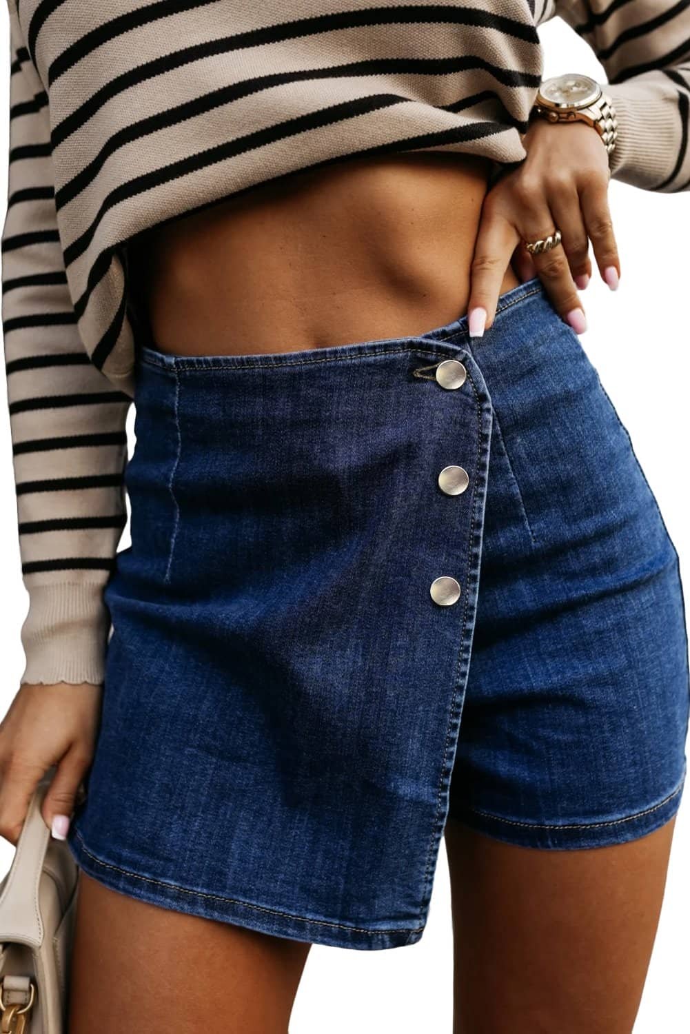 - The unique asymmetric design adds a modern twist to classic denim shorts.