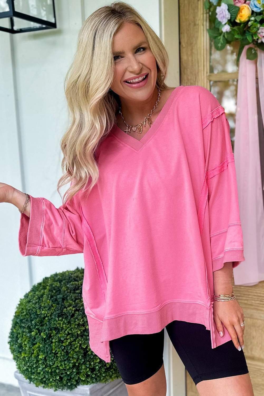 Flattering V-neck design enhances your neckline.