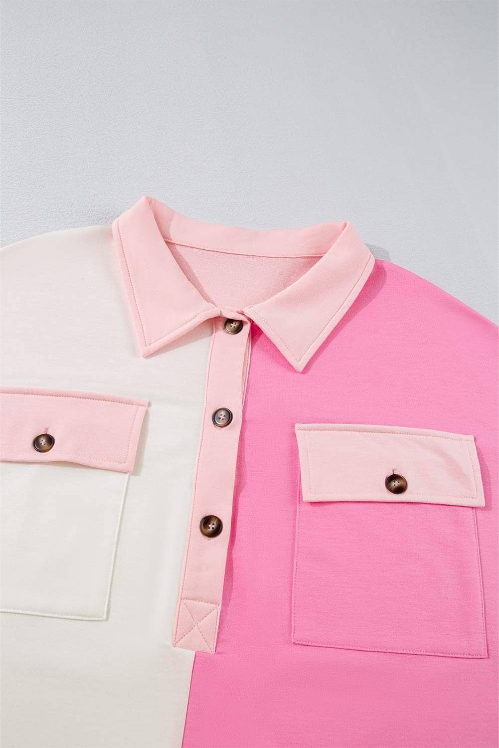 Be the first to review “Bonbon Color Block Chest Pockets Half Button Plus Size Sweatshirt”