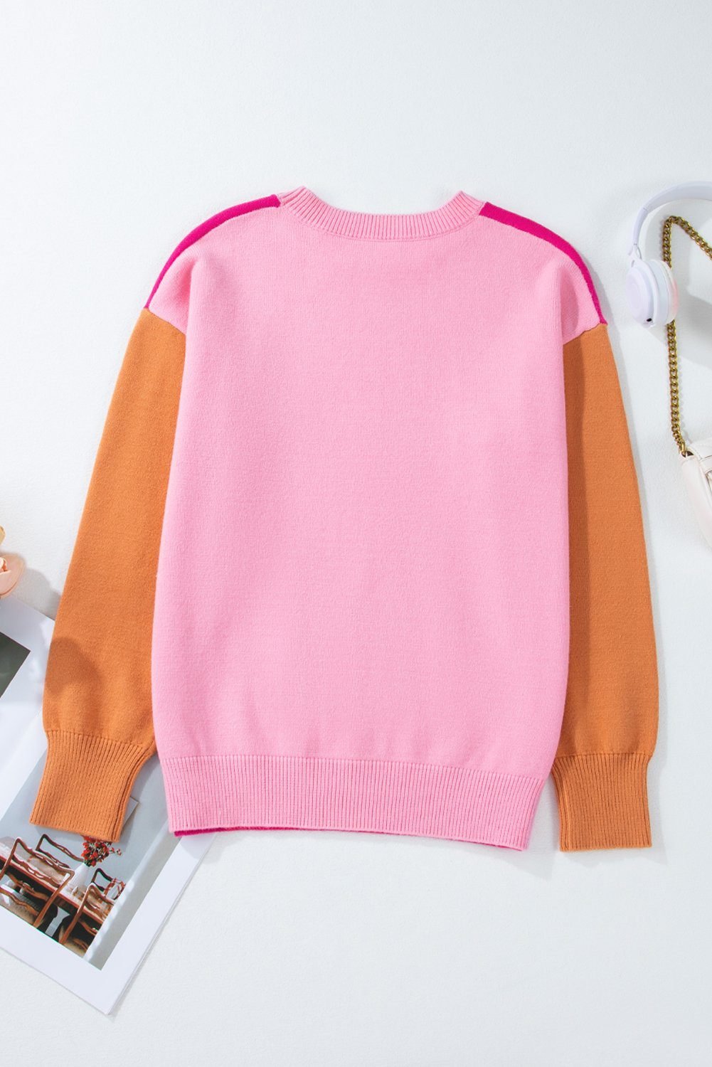 - This knitted sweater adds texture and style for a polished finish.