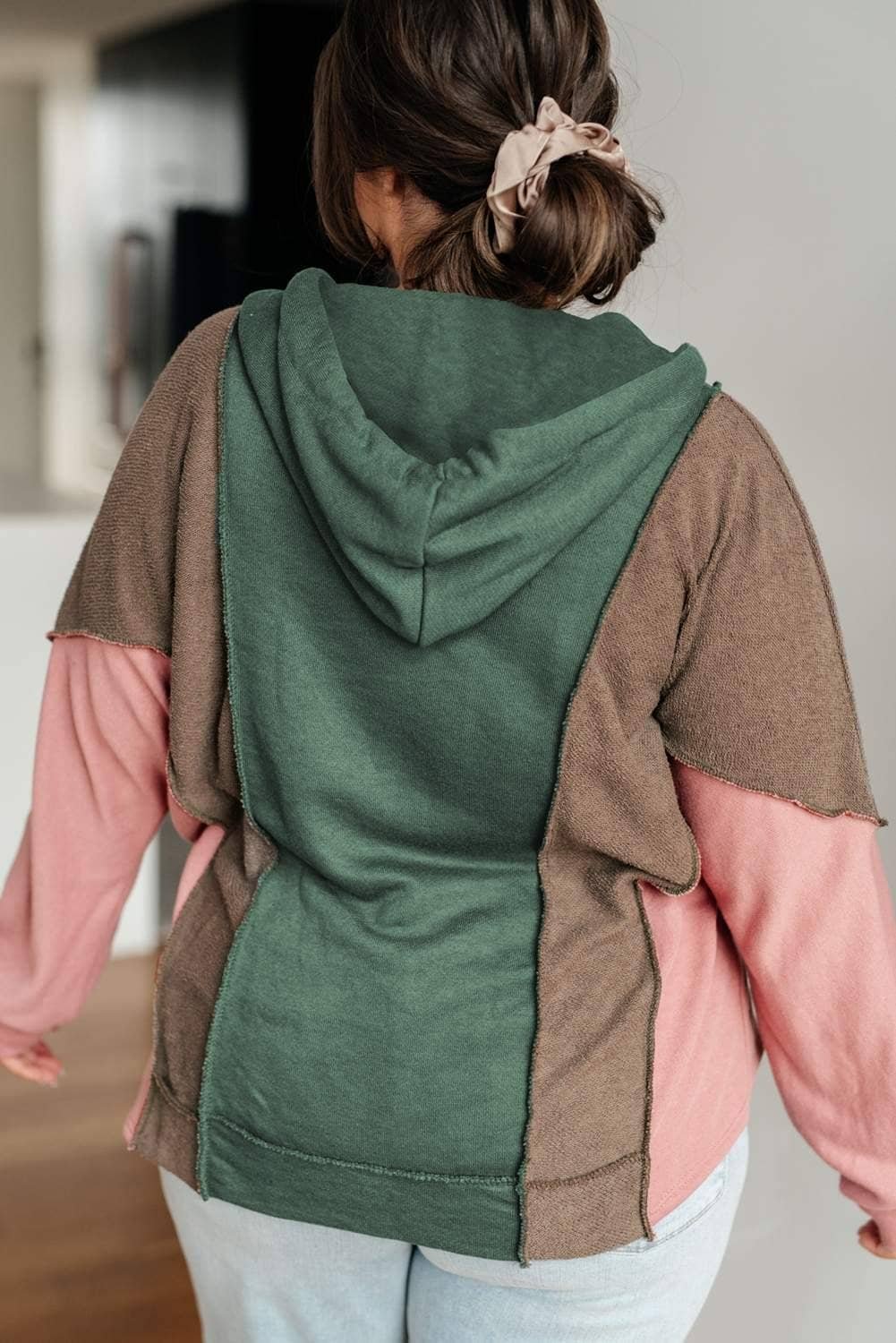 - This loose hoodie provides warmth and versatility for all seasons. Specifically designed for plus sizes, ensuring a comfortable fit. Stylish colorblock and patchwork design for a trendy look. Features a cozy hood and a flattering V-neckline for added style. Deals Tunnel plus size hoodies have delicate cuttings and attractive prices.