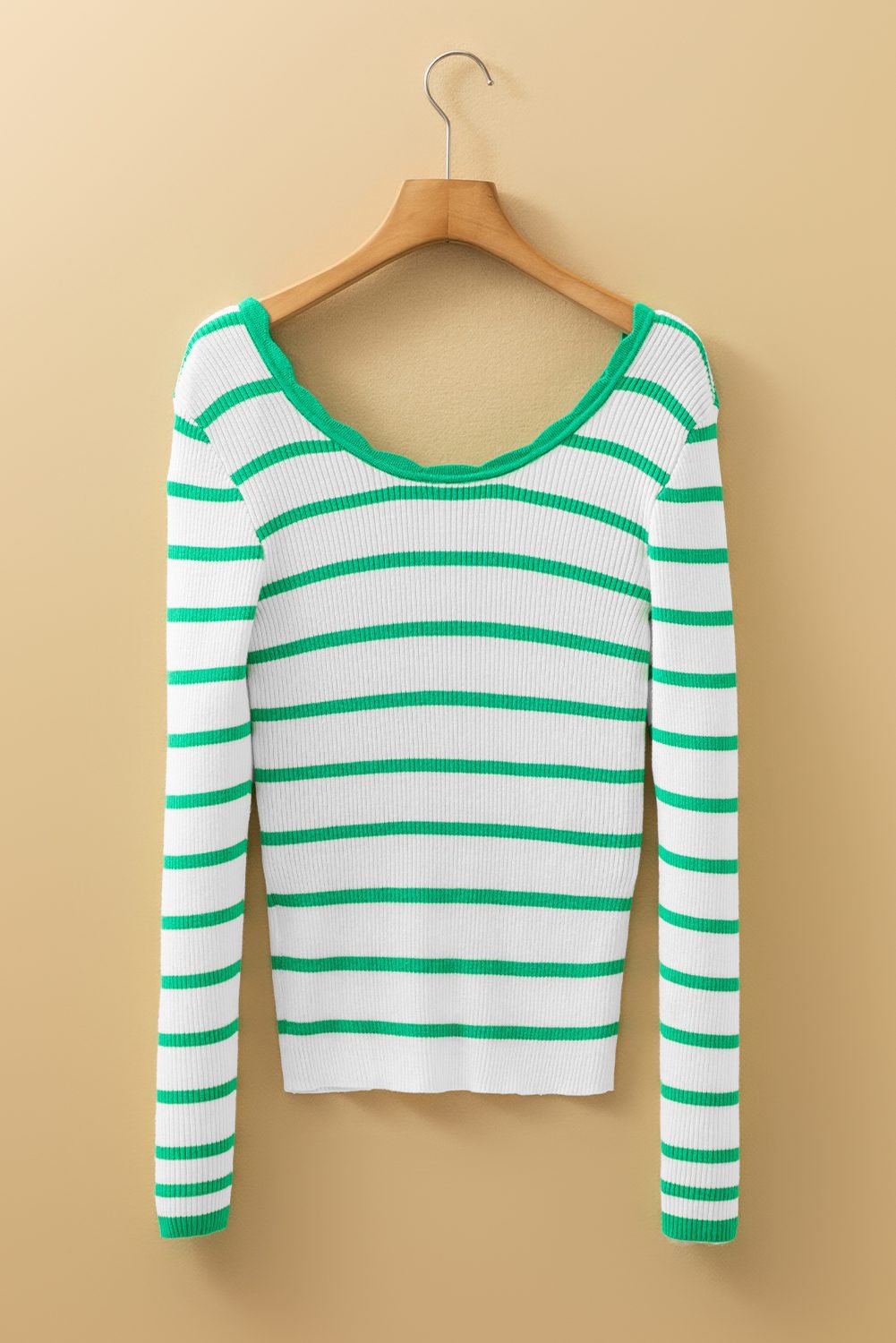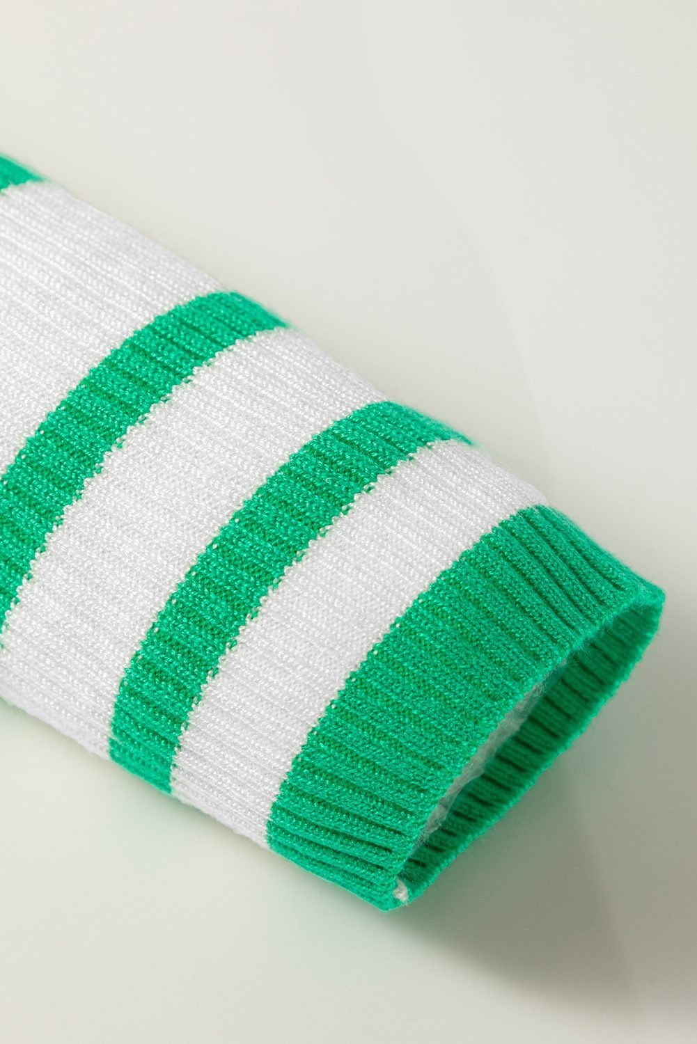 Striped ribbed knit creates a slimming and textured effect.
