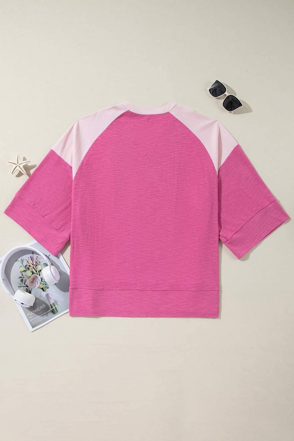 Be the first to review “Bright Pink Textured Colorblock 3/4 Sleeve Oversize Top”